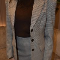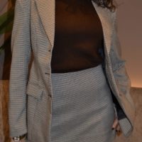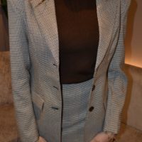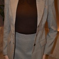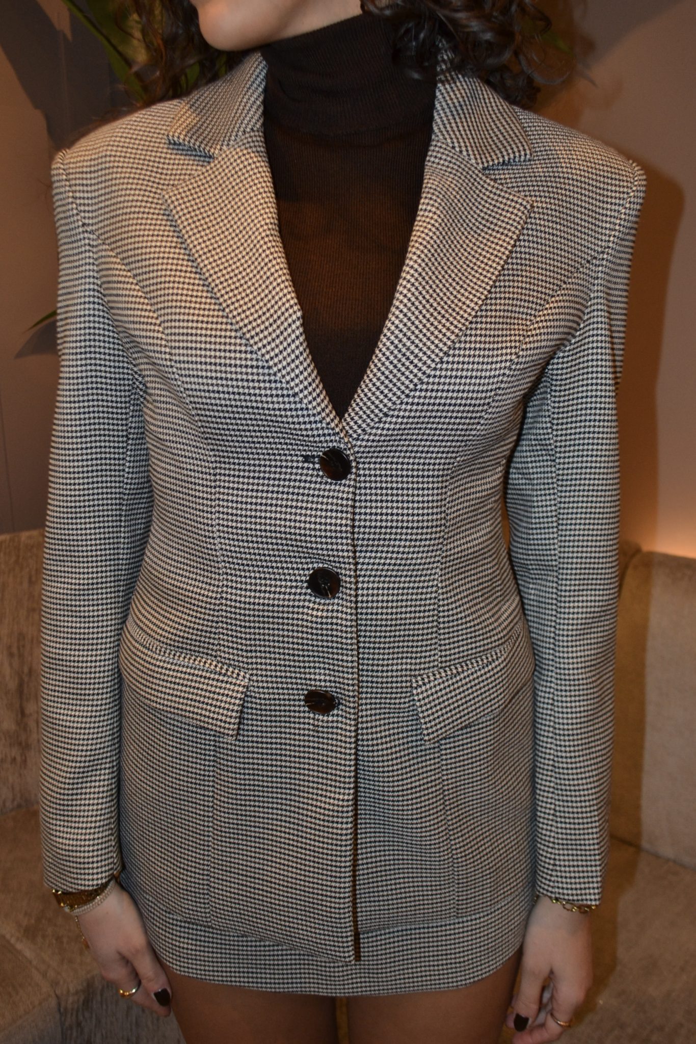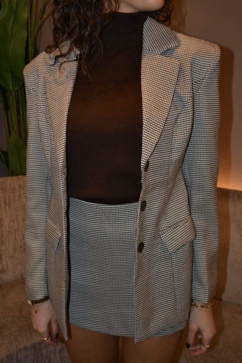 · Blazer à motif pied-de-poule noir et brun, chic et structuré