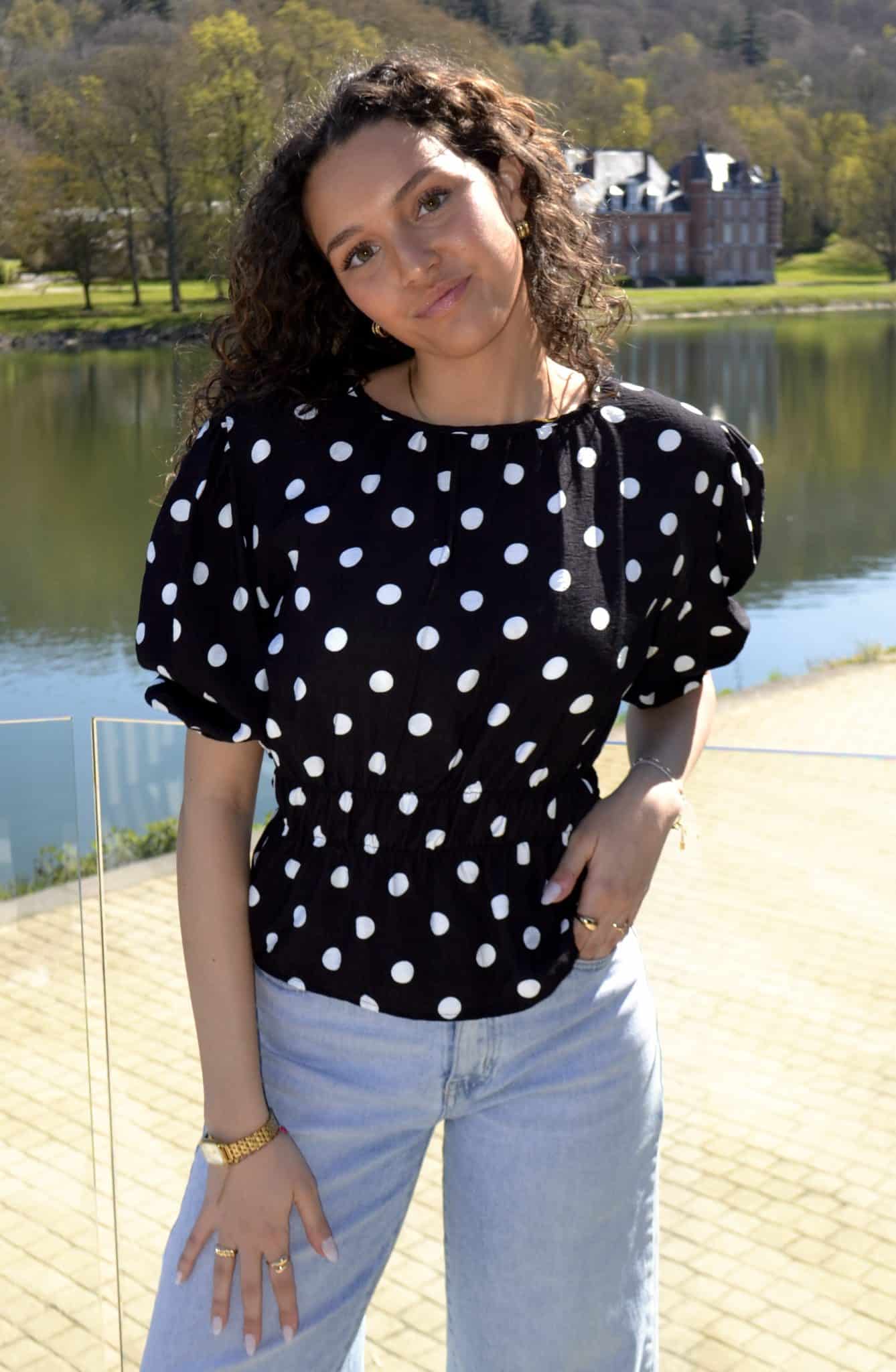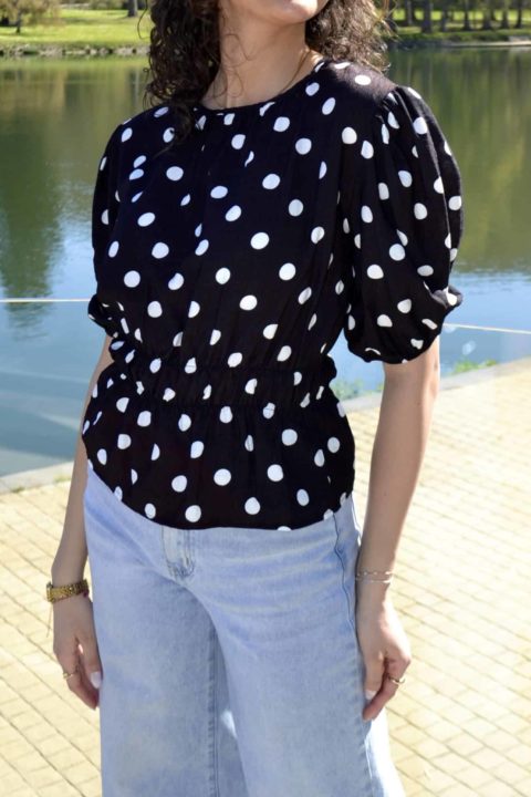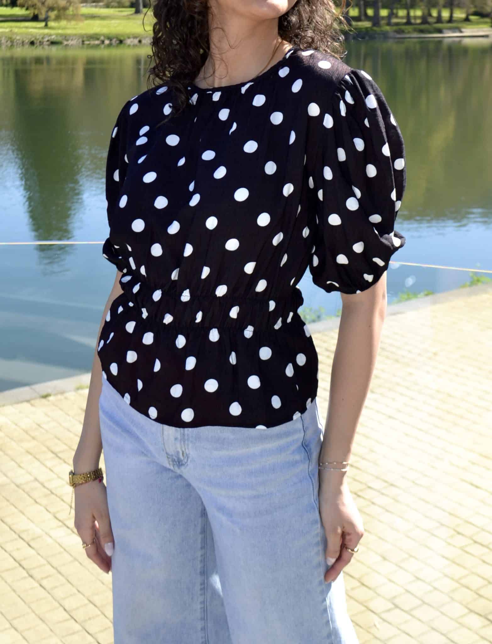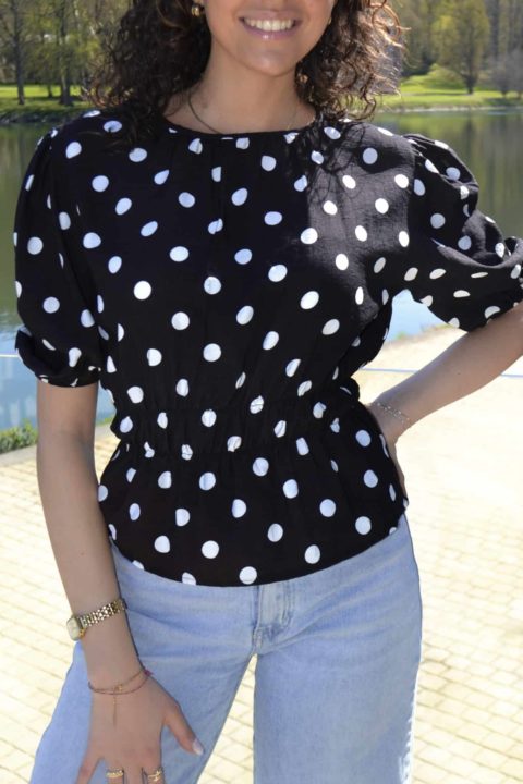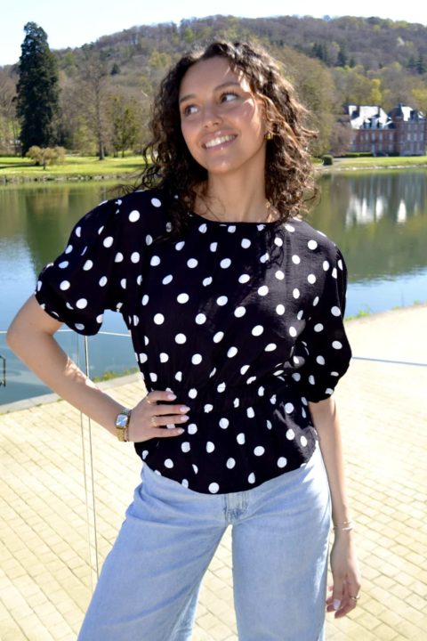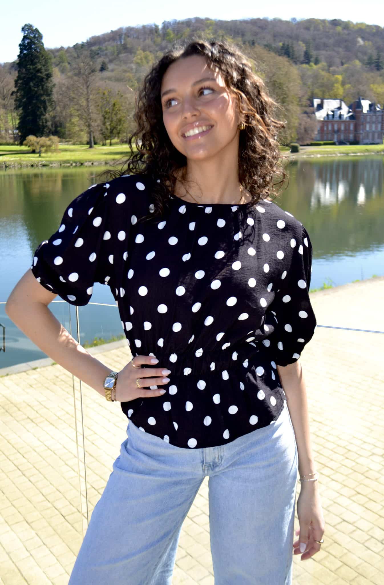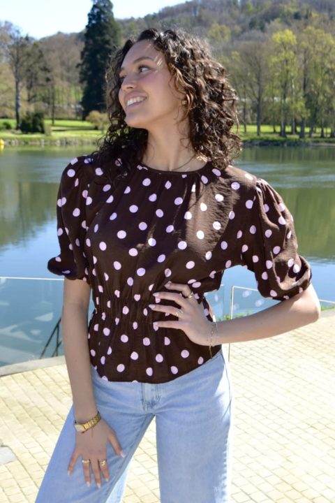 Blouse à pois manches bouffantes