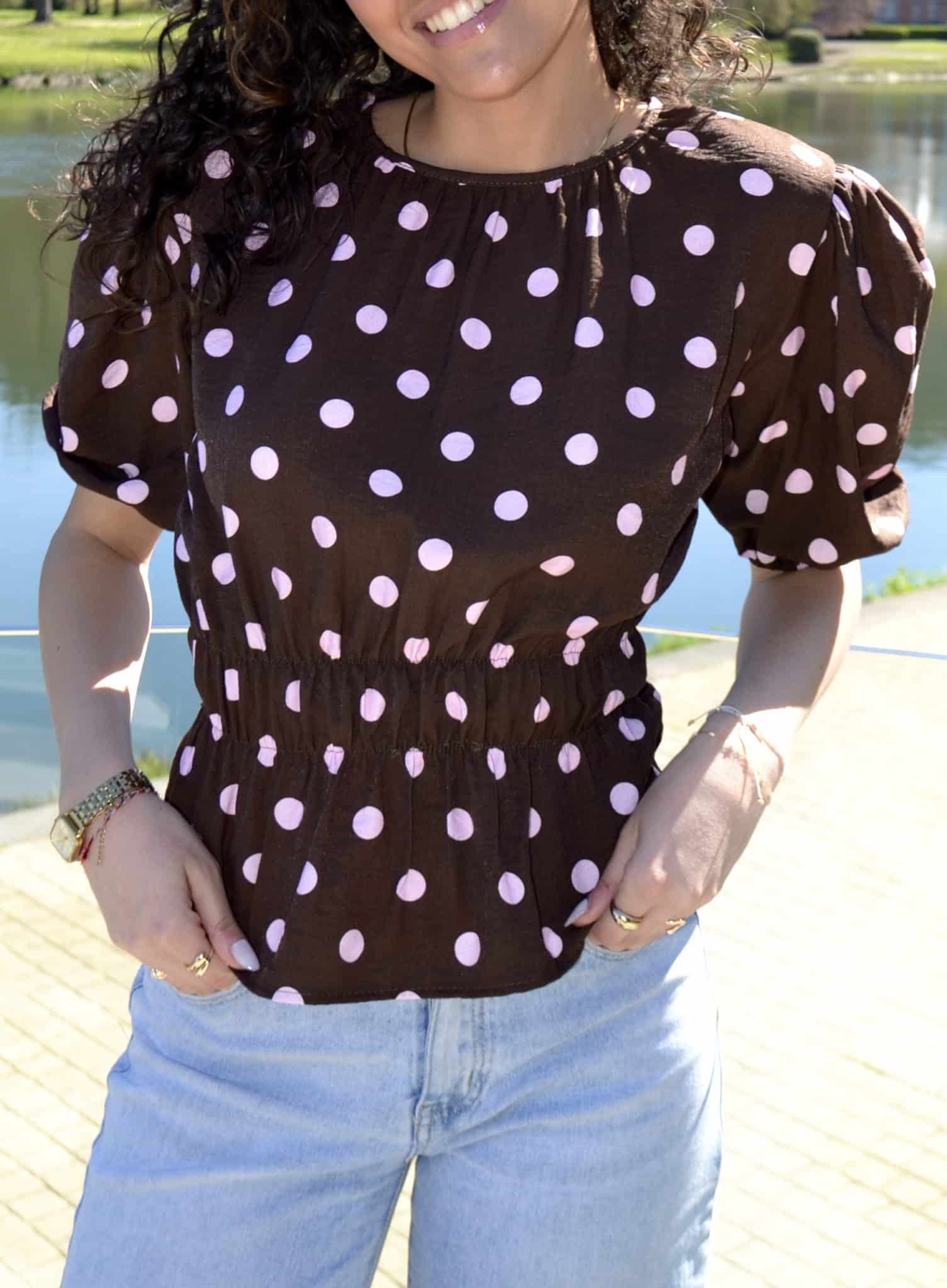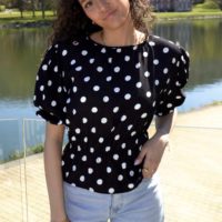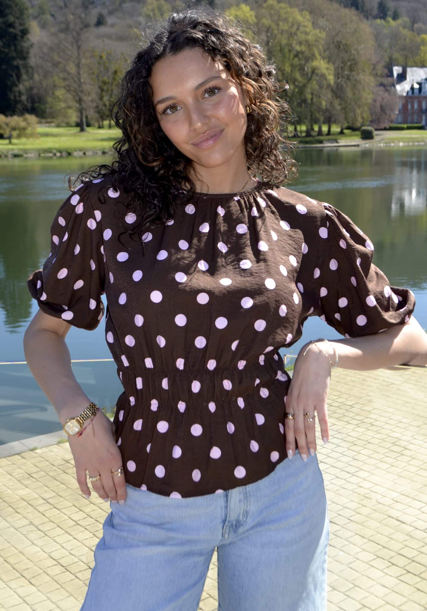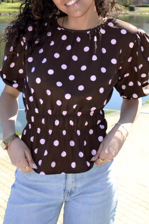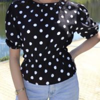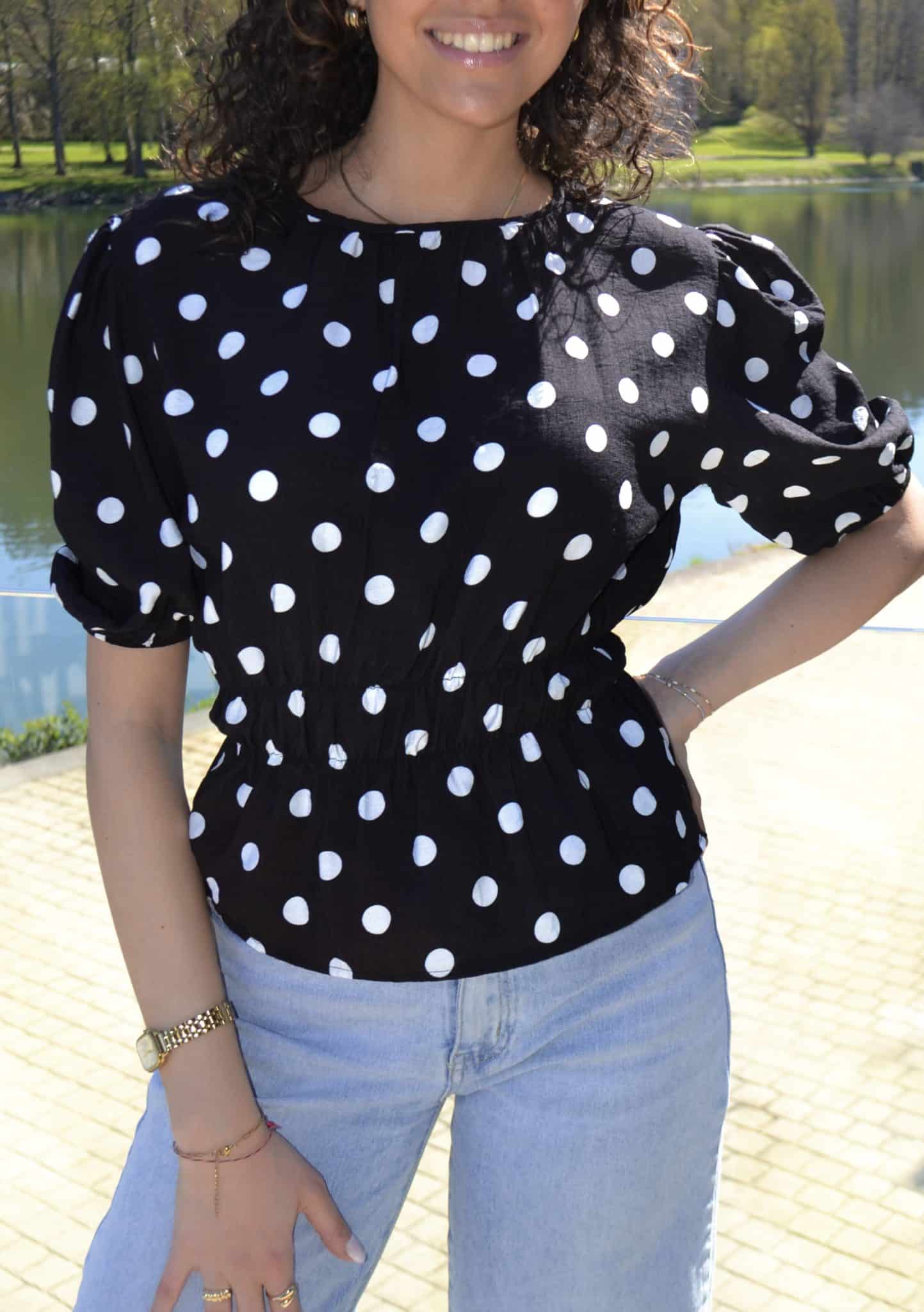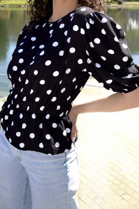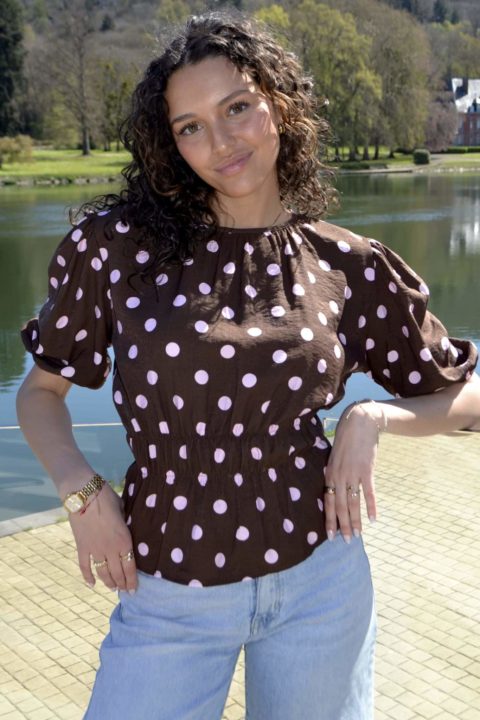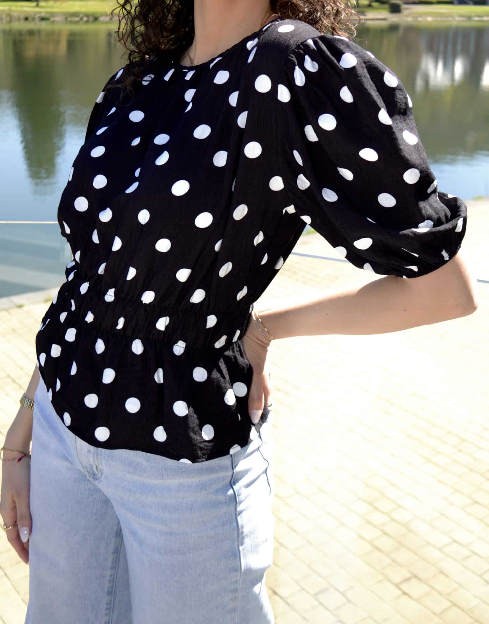 Blouse à pois manches bouffantes