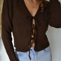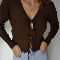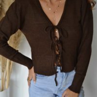· Fermeture sur le devant par trois liens à nouer pour un effet féminin et tendance