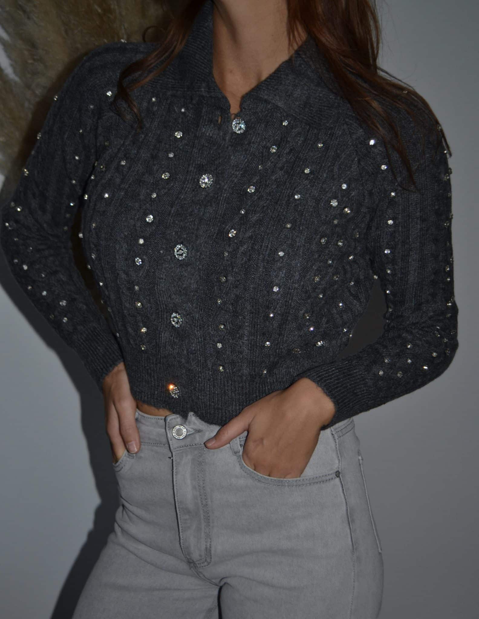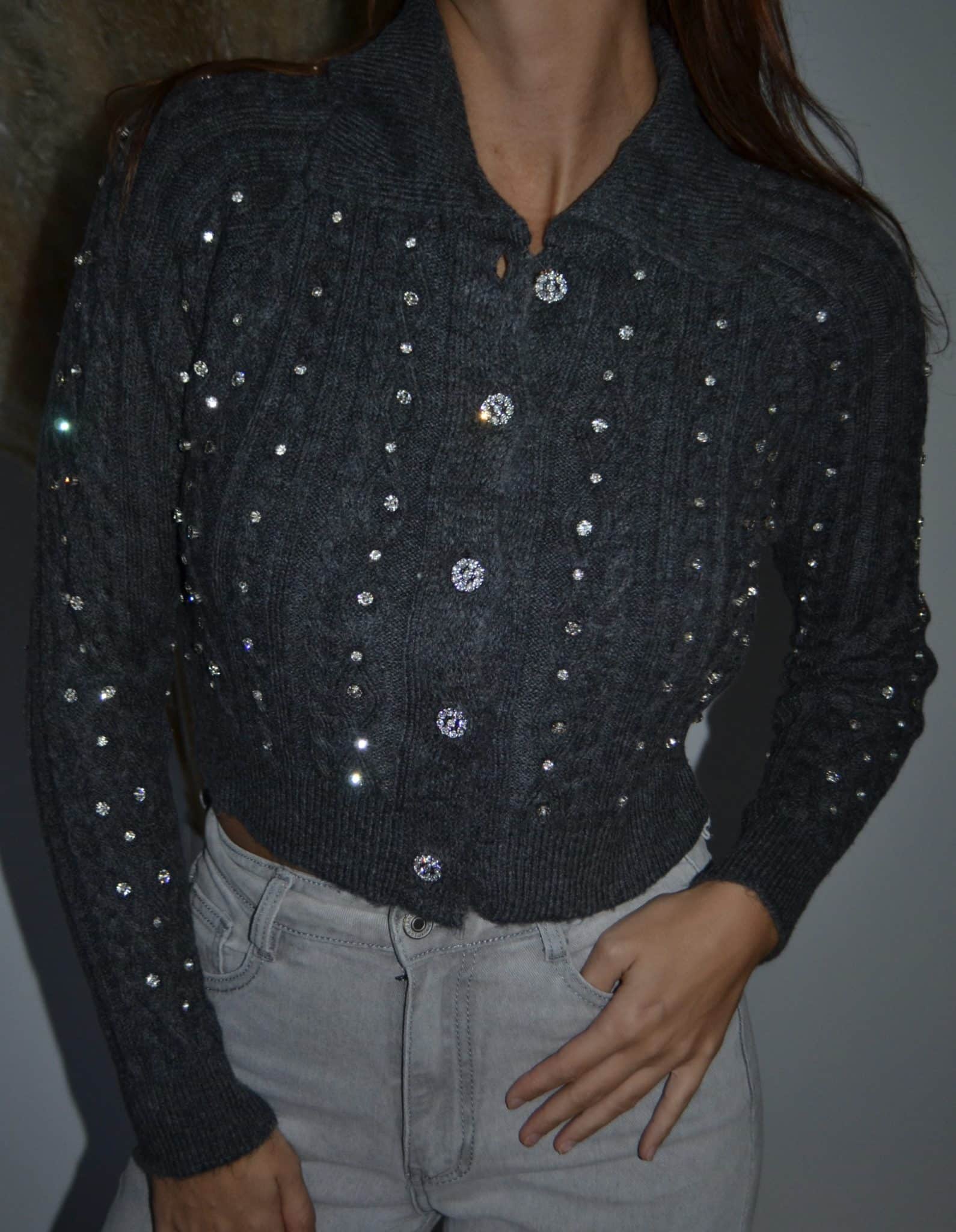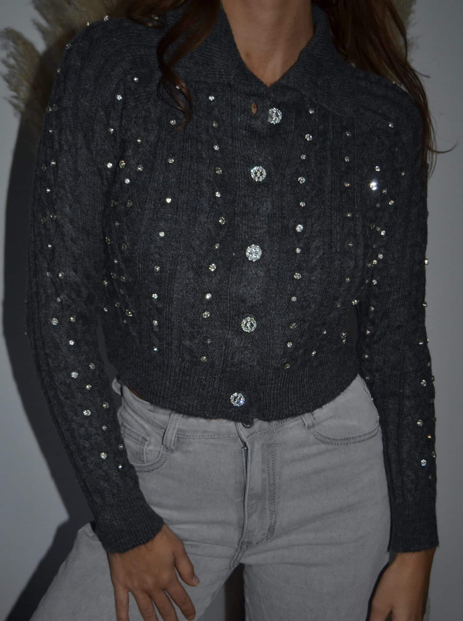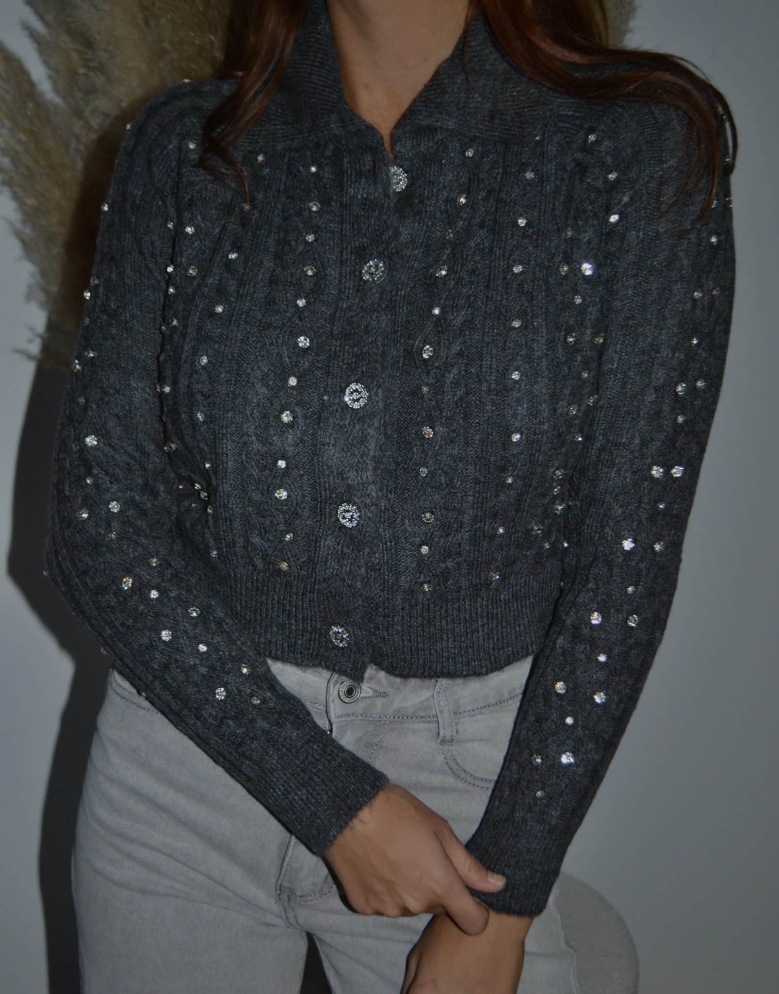 · Gilet en maille torsadée orné de brillants scintillants sur l’ensemble du vêtement