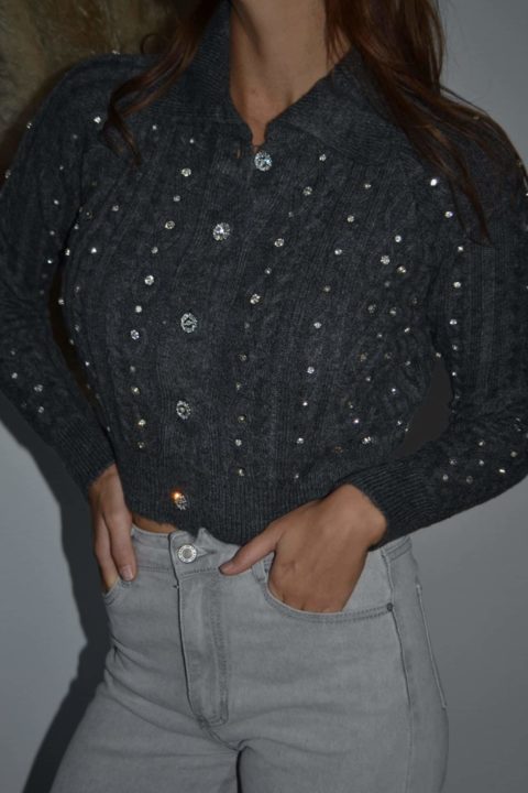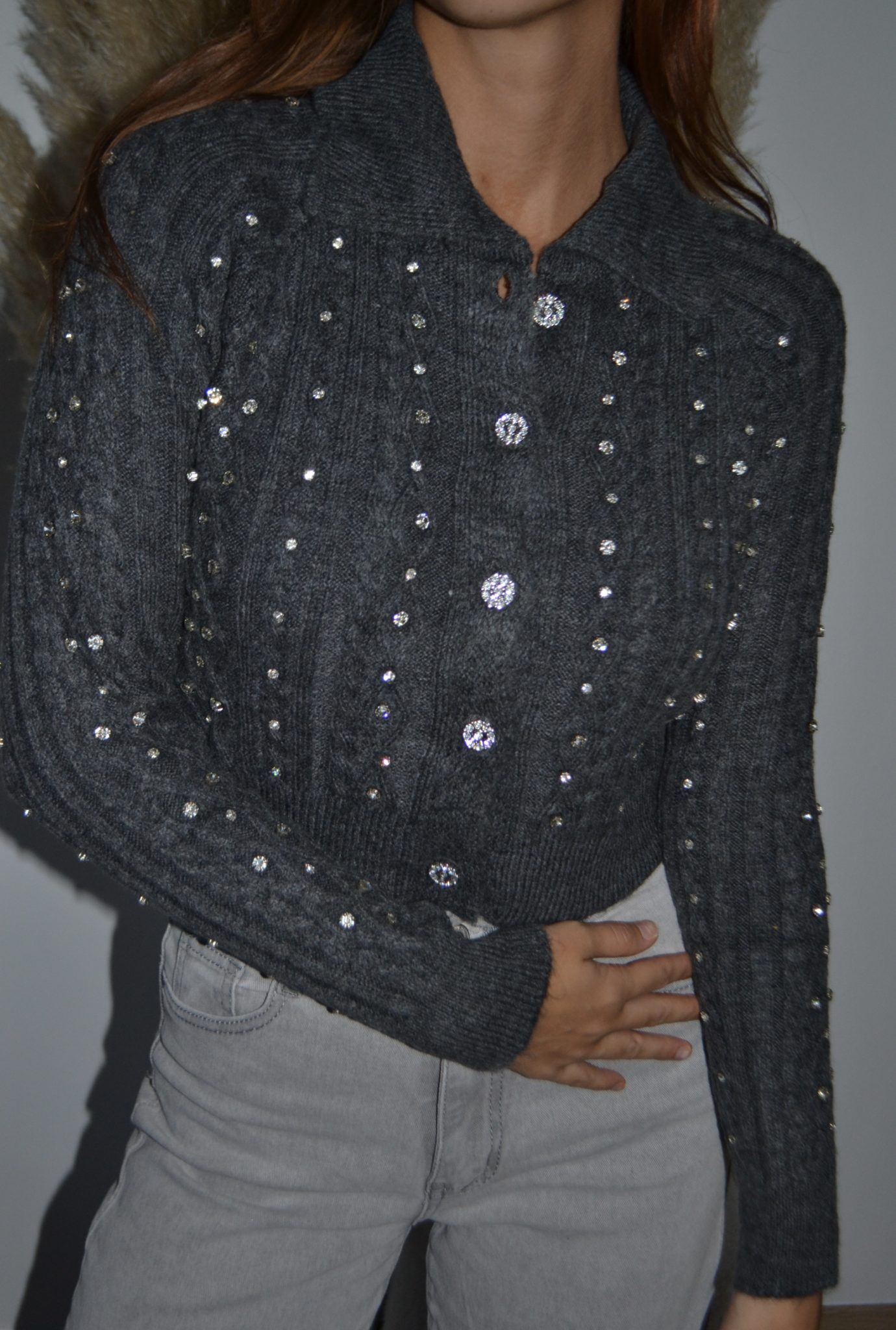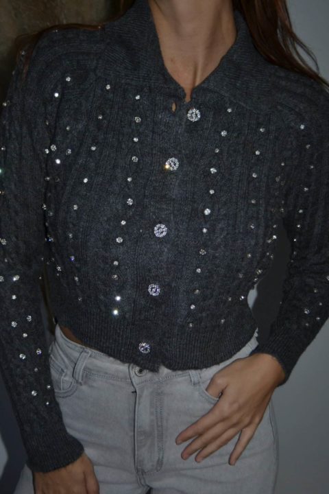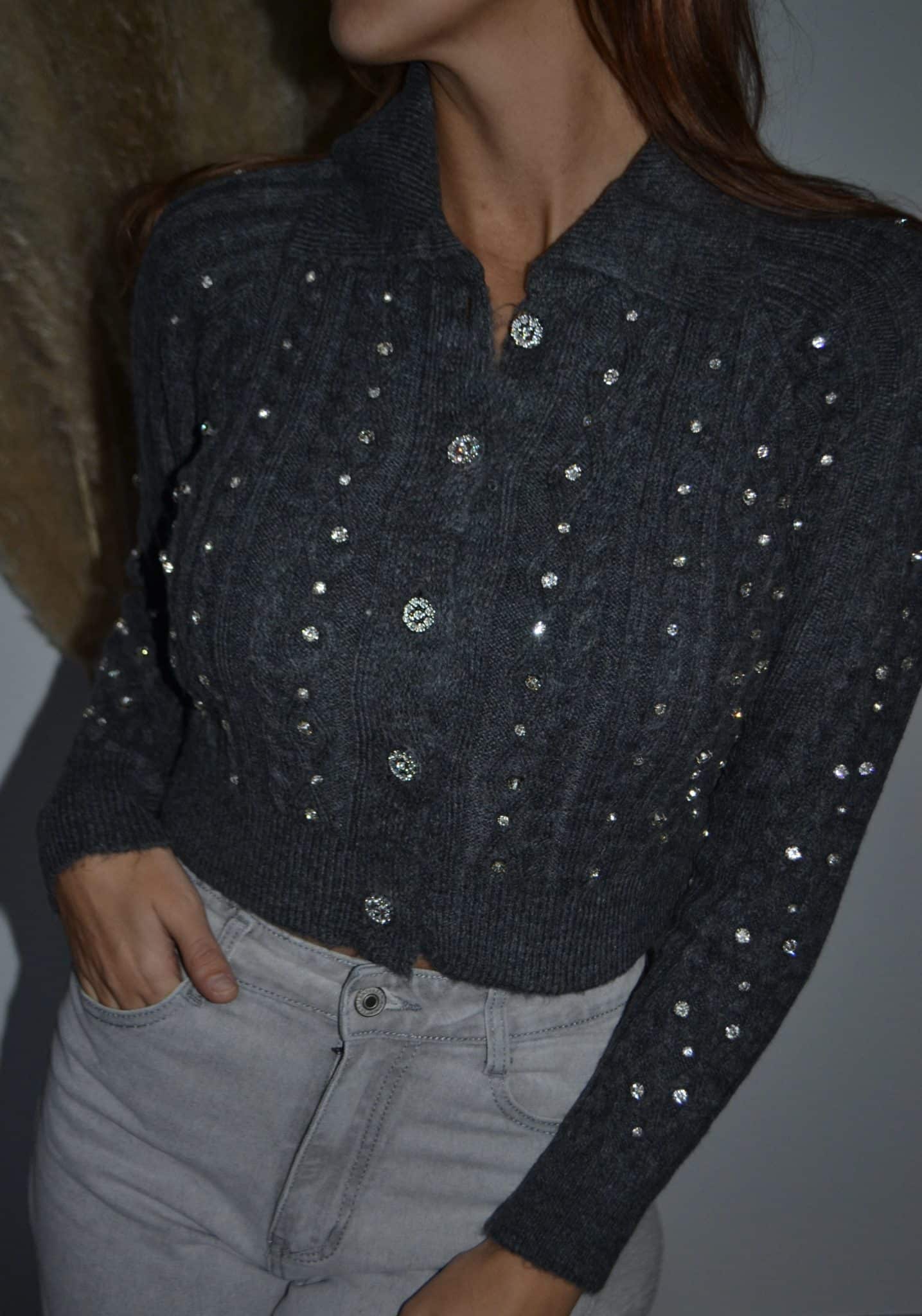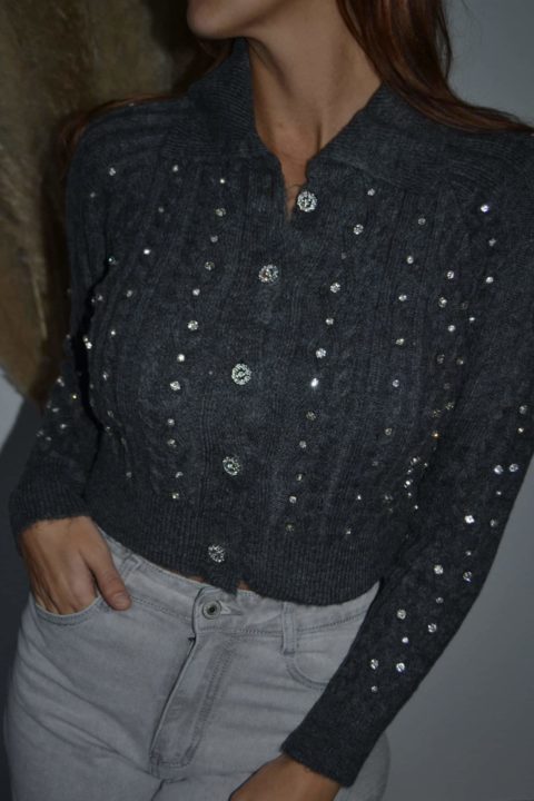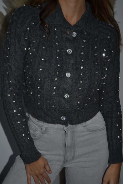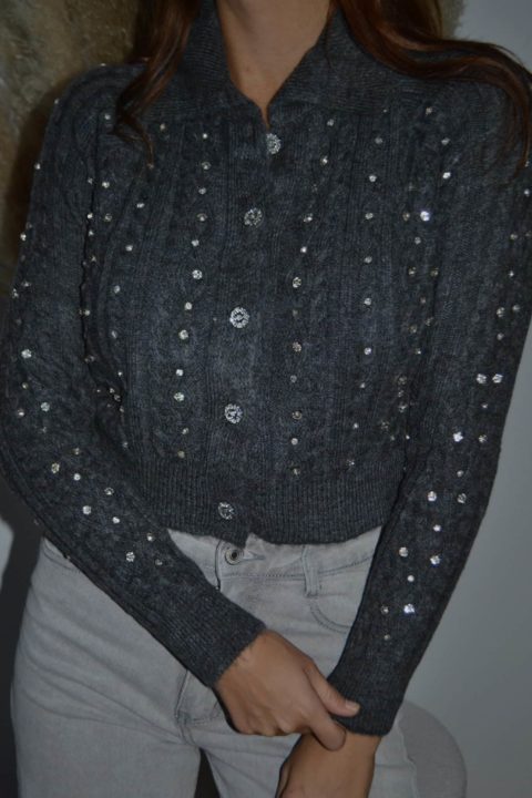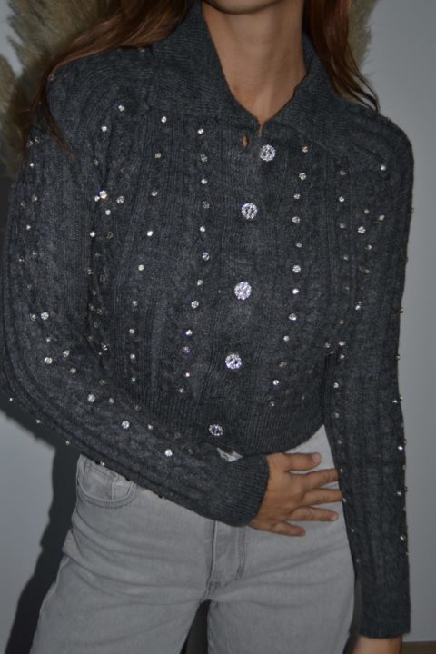 · Gilet en maille torsadée orné de brillants scintillants sur l’ensemble du vêtement