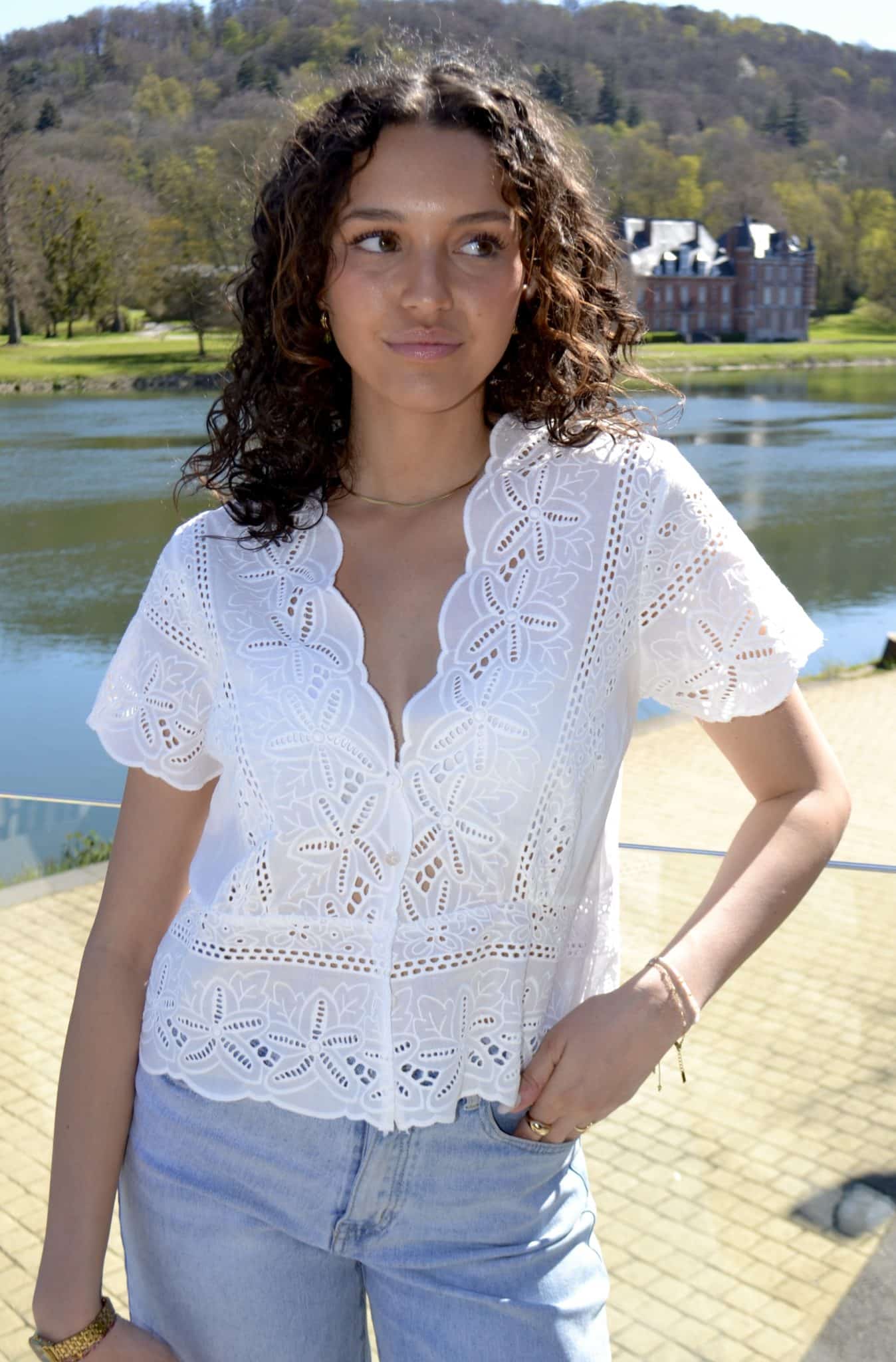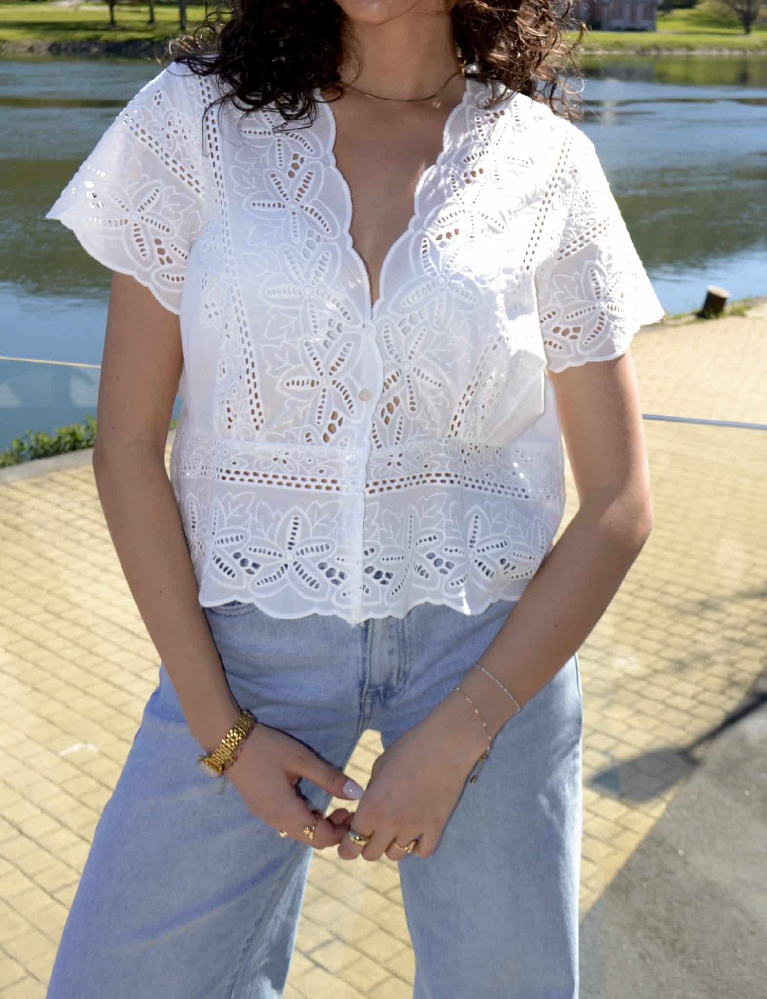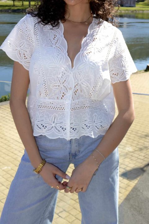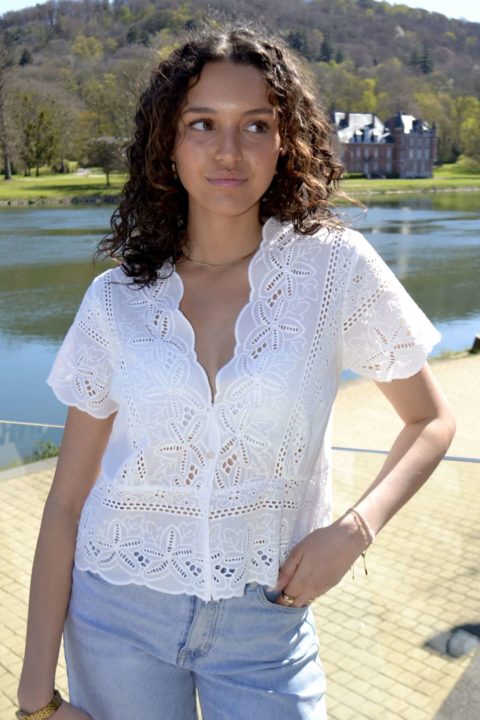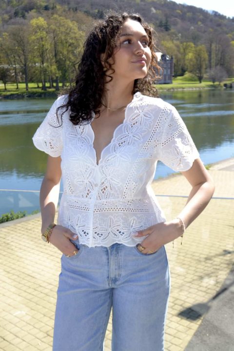 · Haut en broderie au motif floral ajouré, ultra féminin et élégant