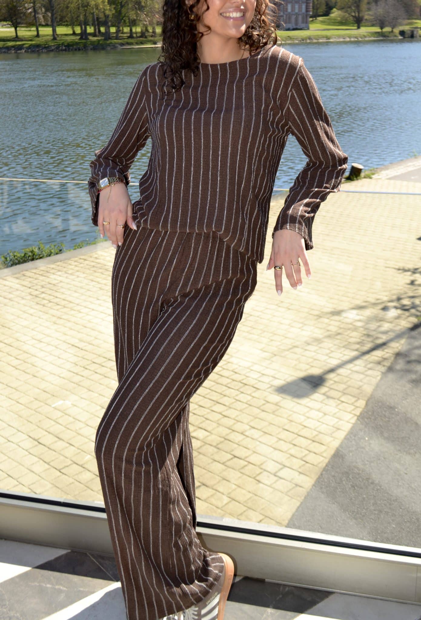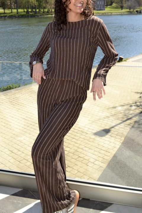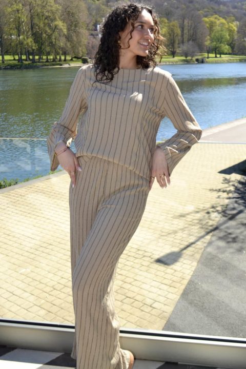 · Haut fluide à rayures verticales pour un effet allongeant et élégant