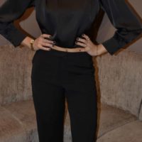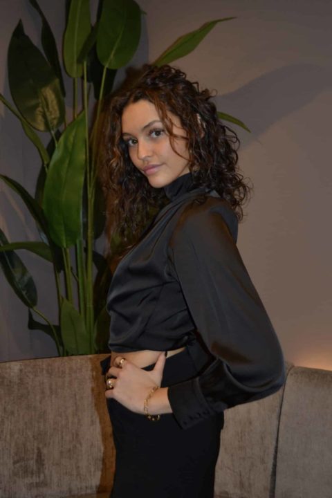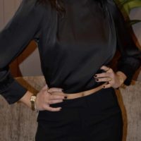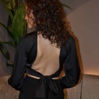 · Col montant structuré qui contraste avec l’ouverture du dos