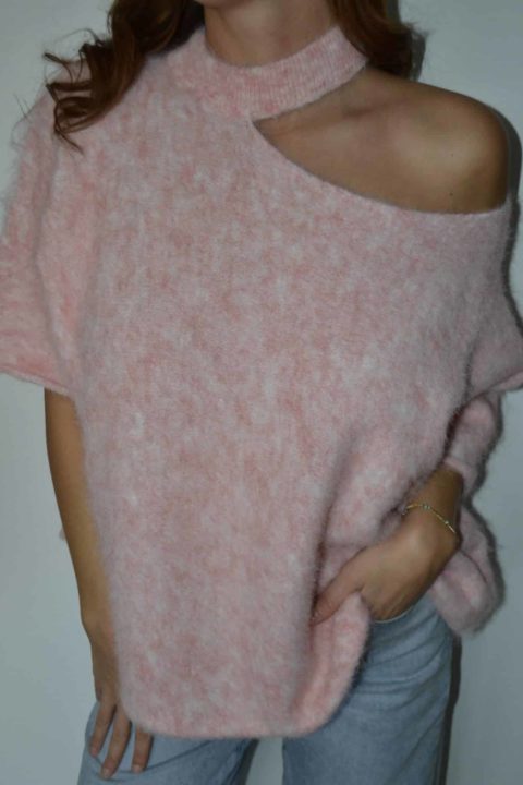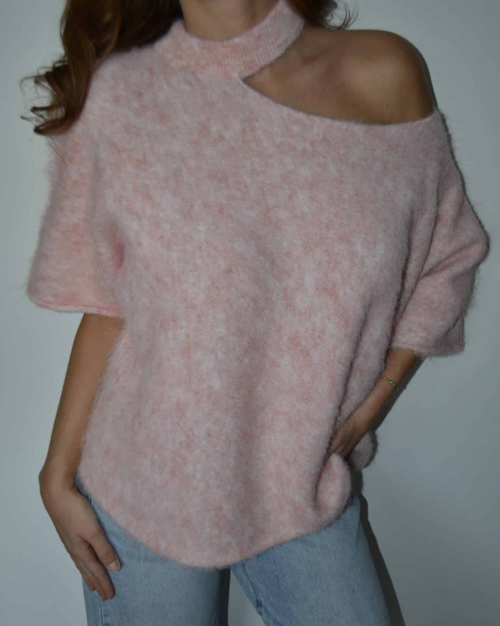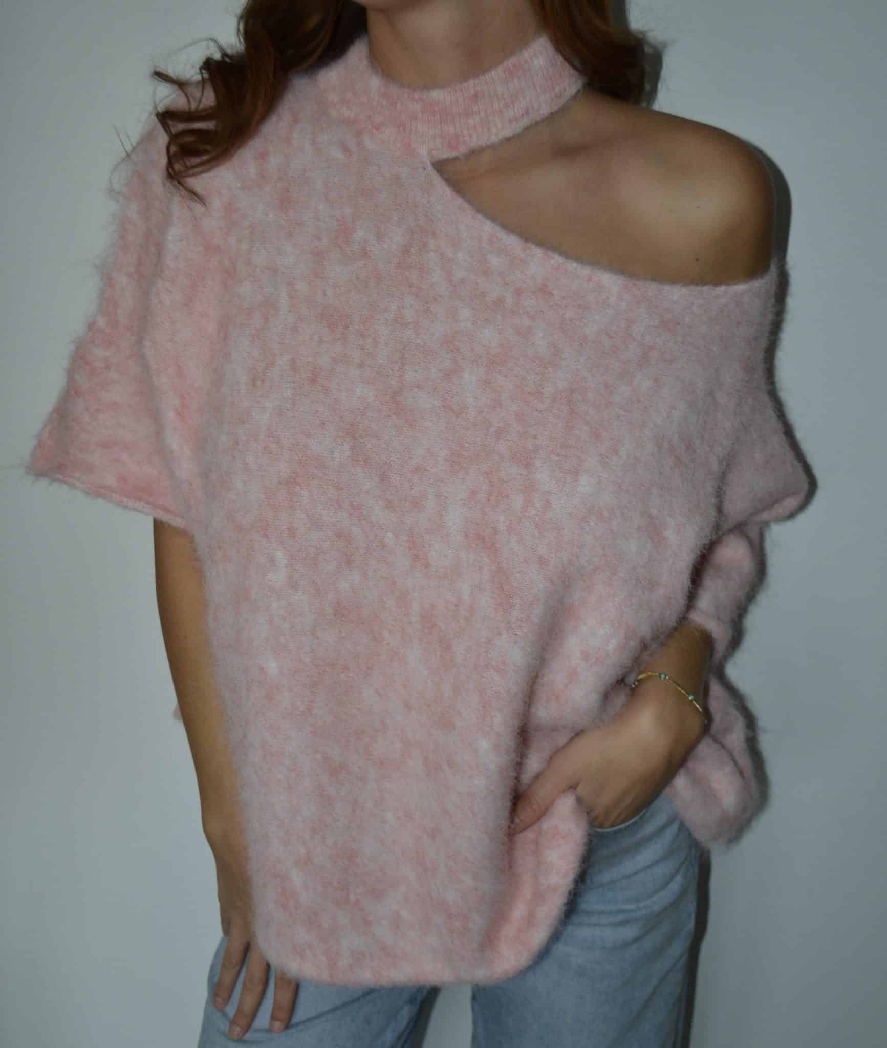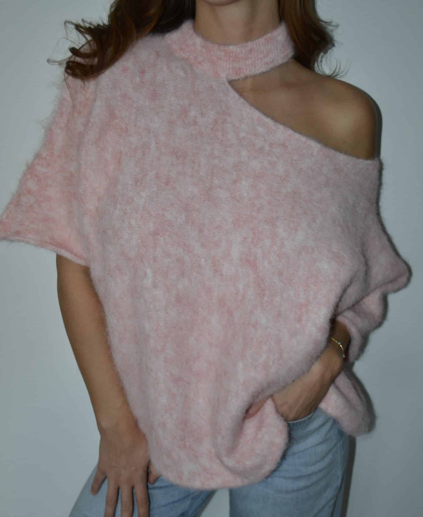 Pull asymétrique en maille douce effet fluffy