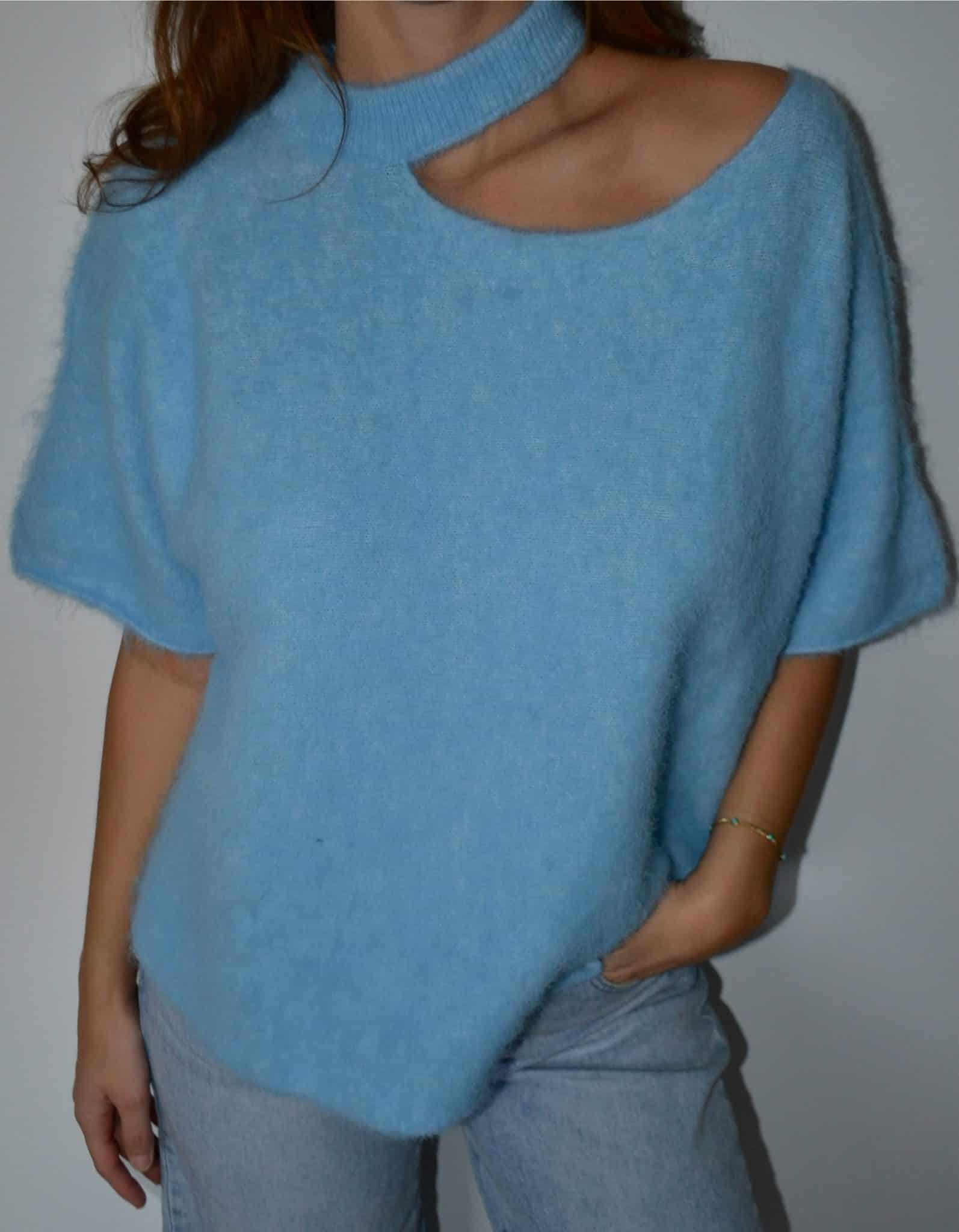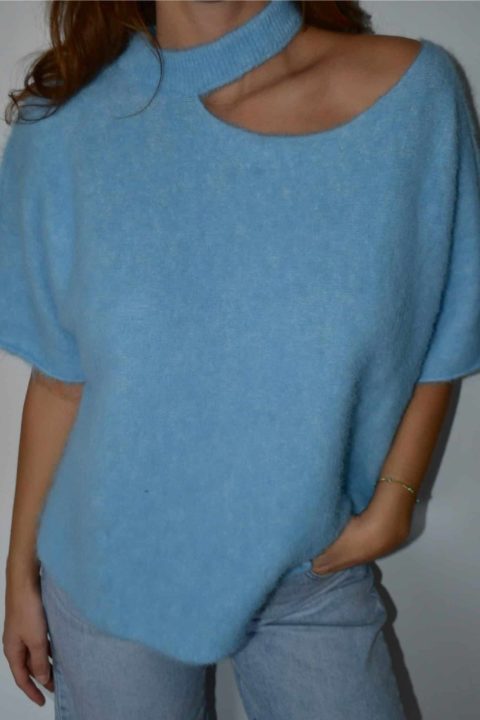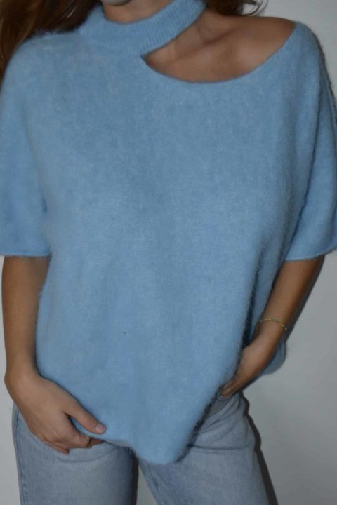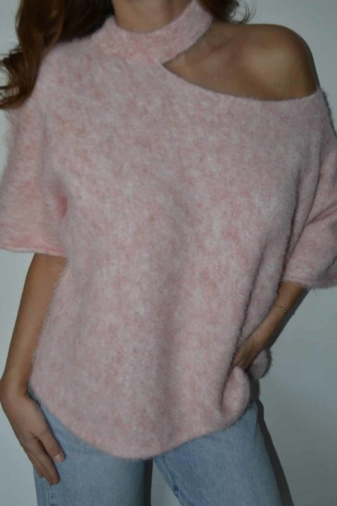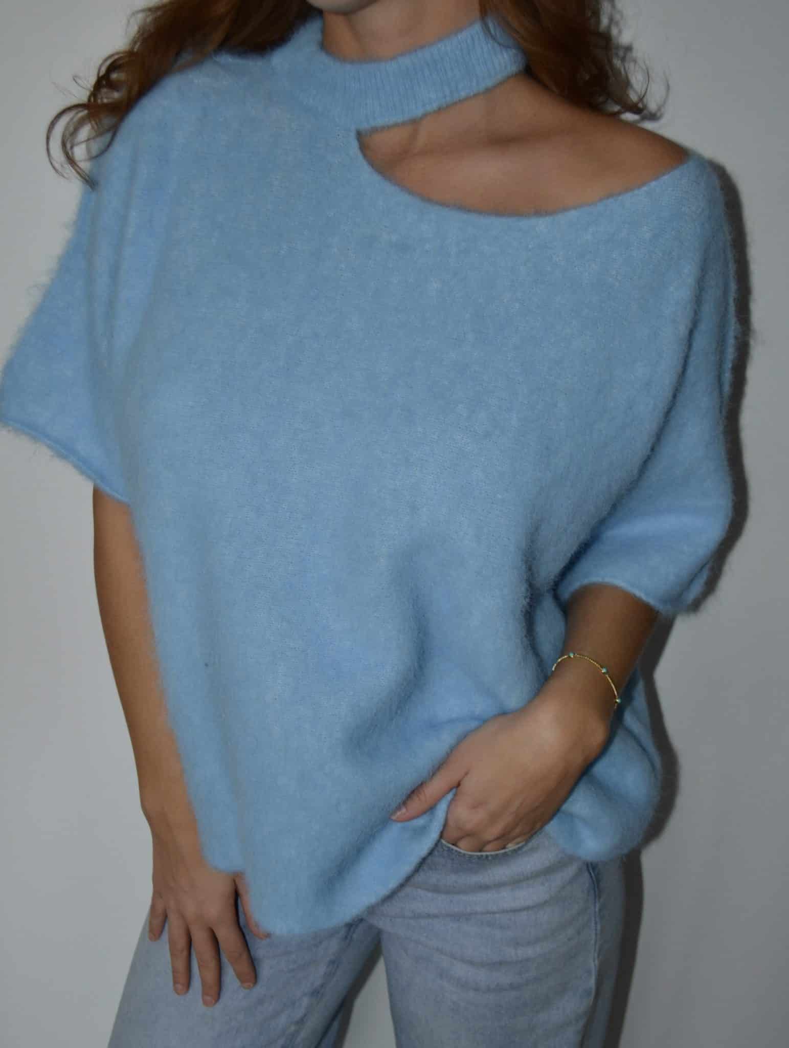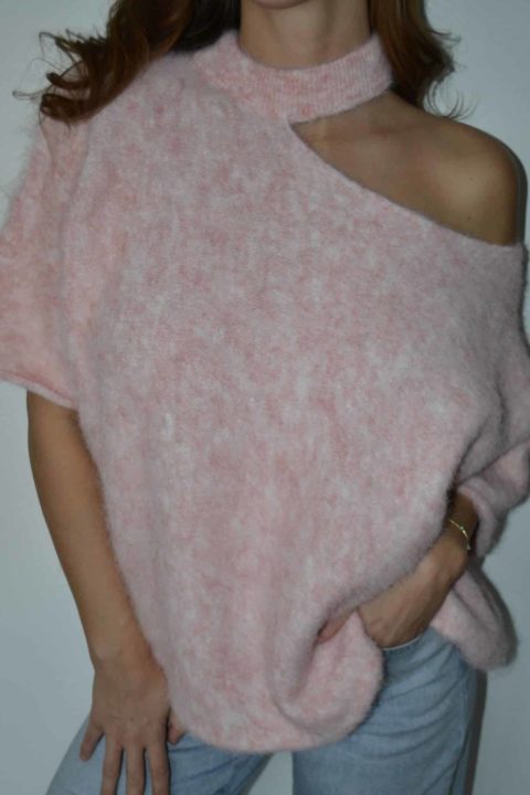 Pull asymétrique en maille douce effet fluffy
