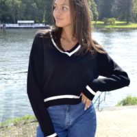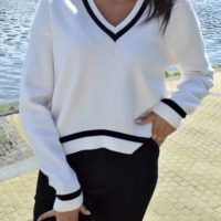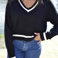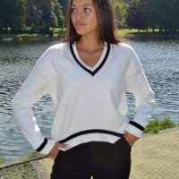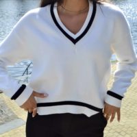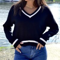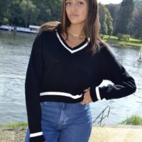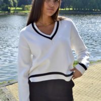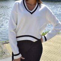· Col V profond souligné de rayures contrastées pour un look sport-chic