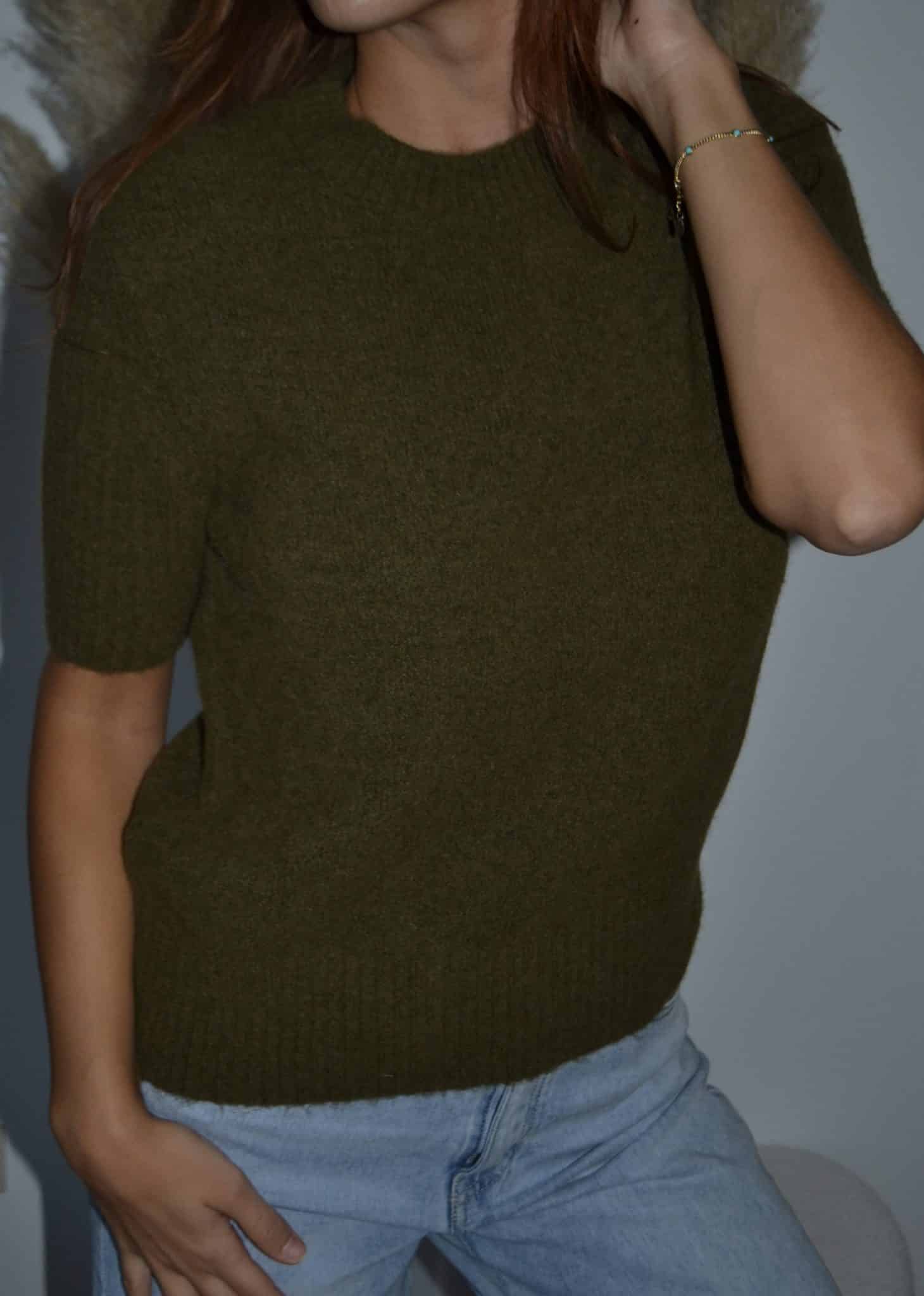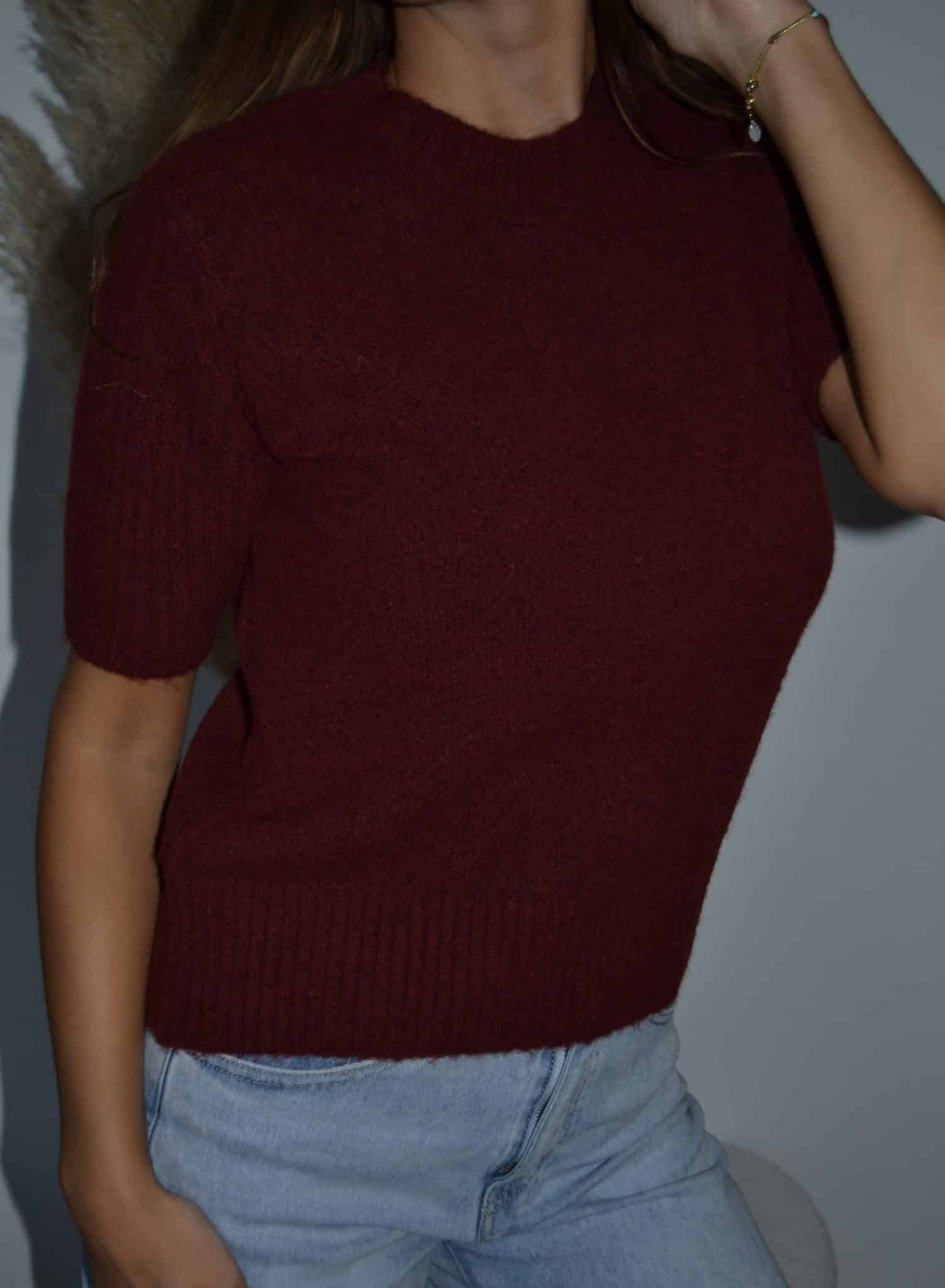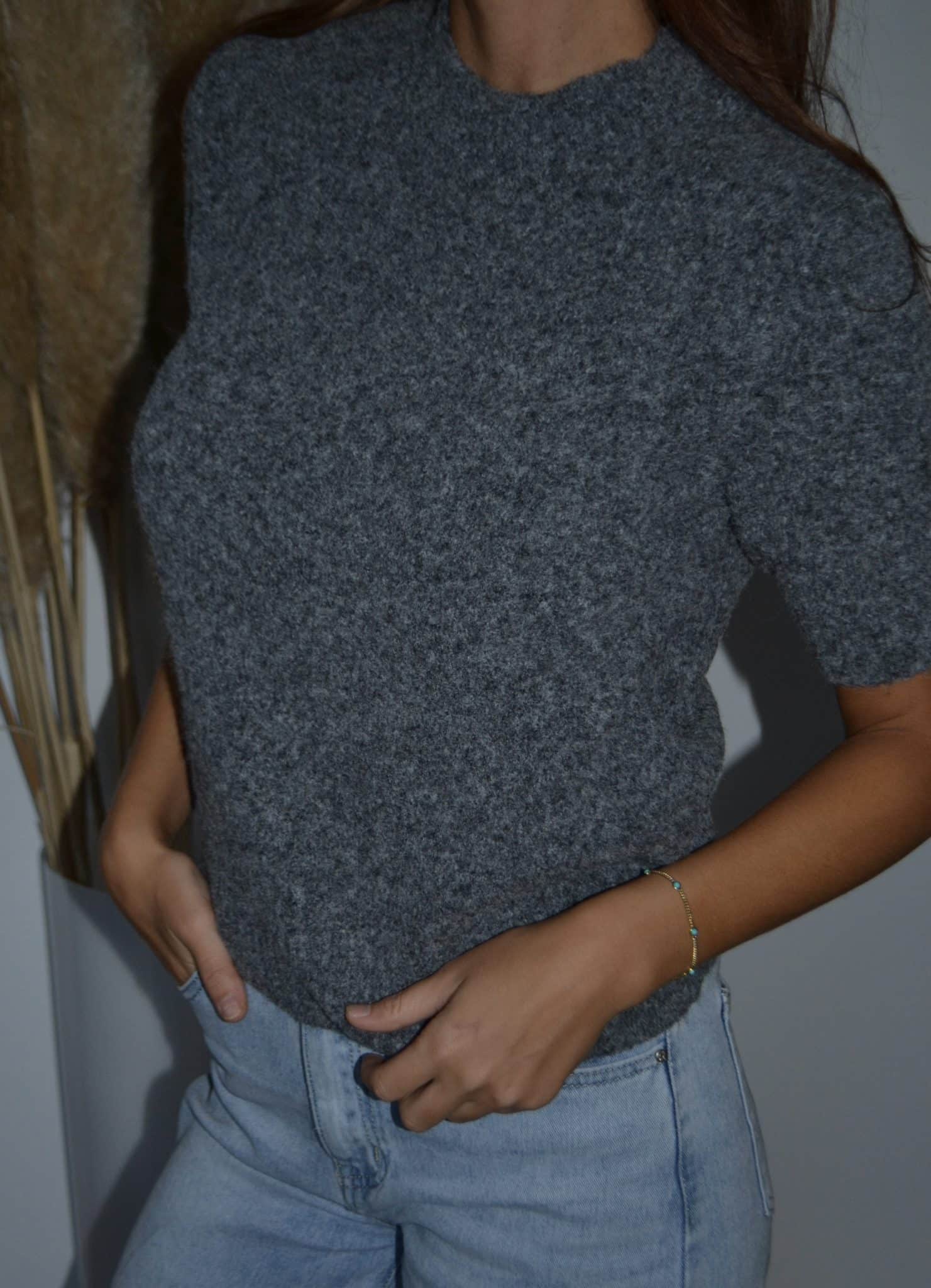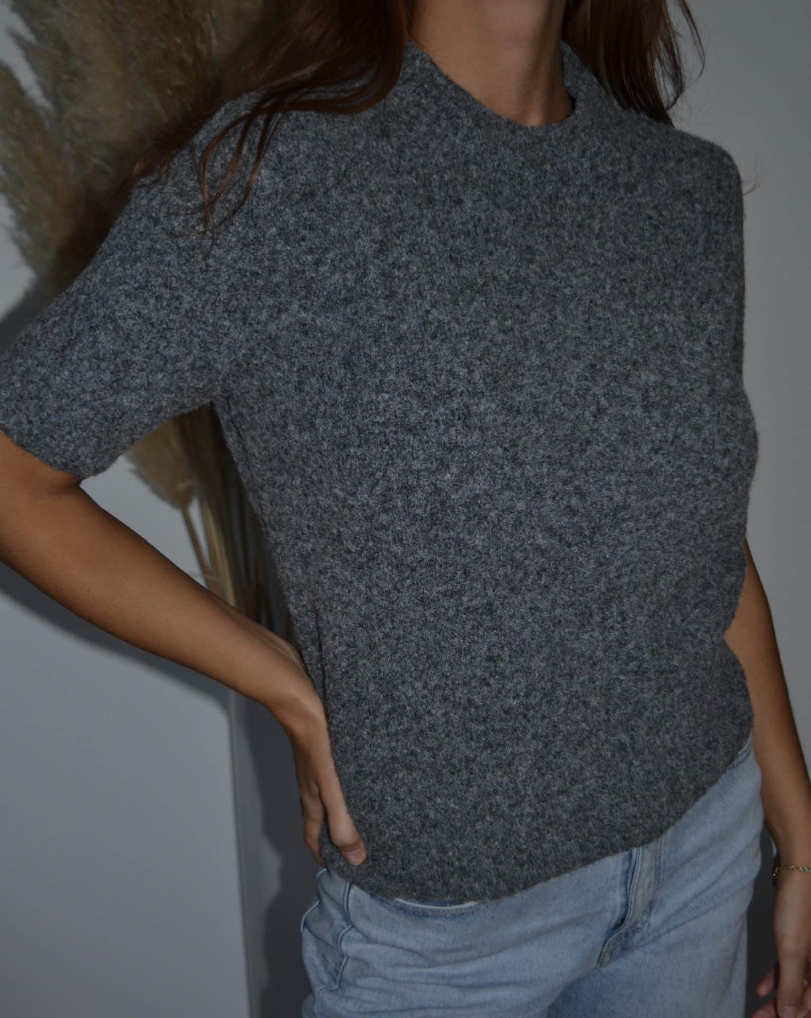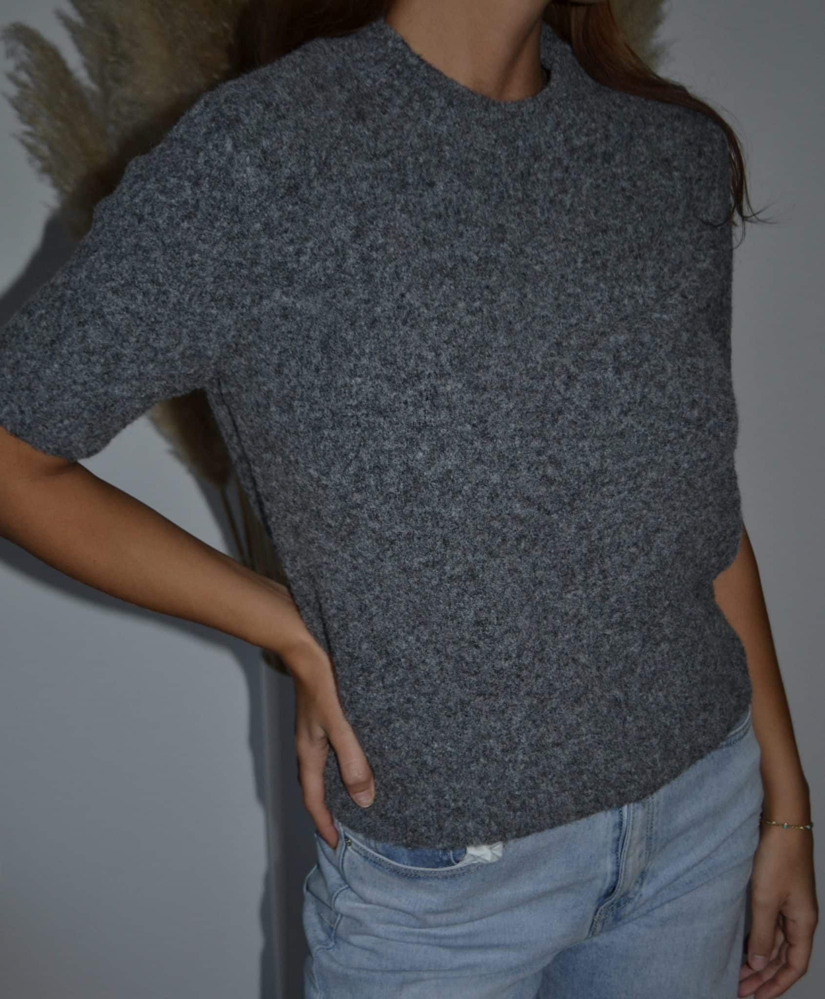 · Pull en maille douce et duveteuse, à manches courtes structurées