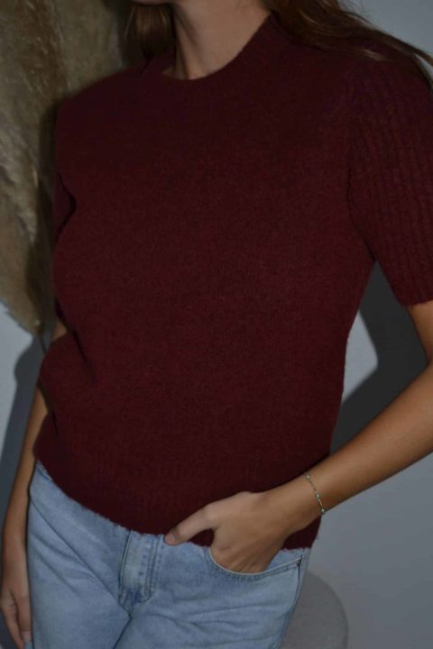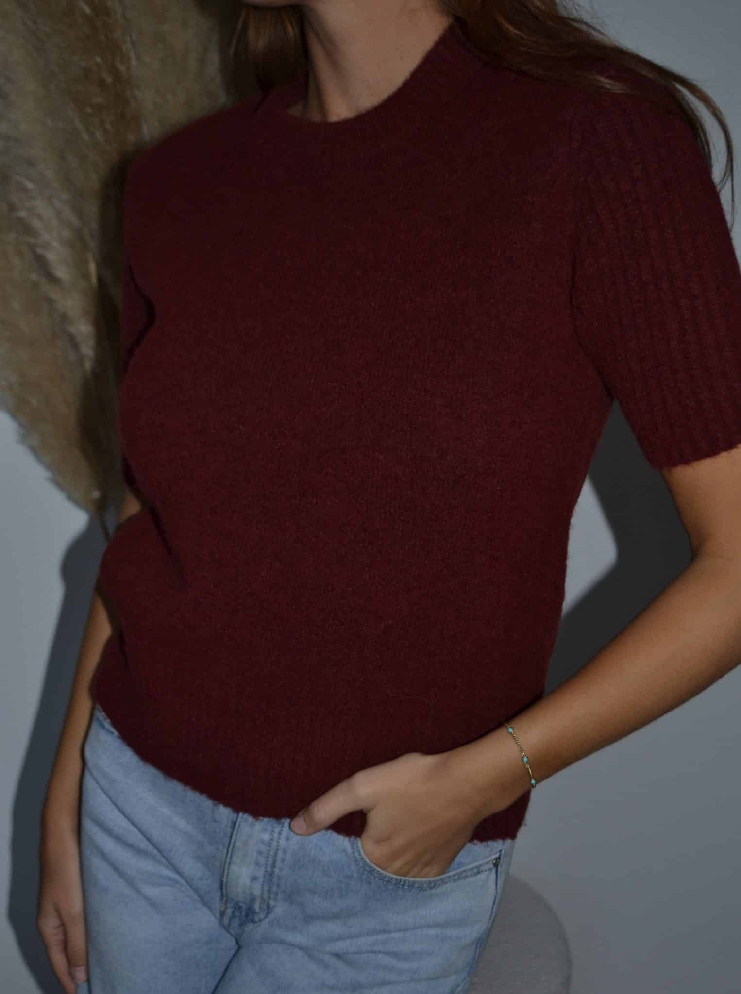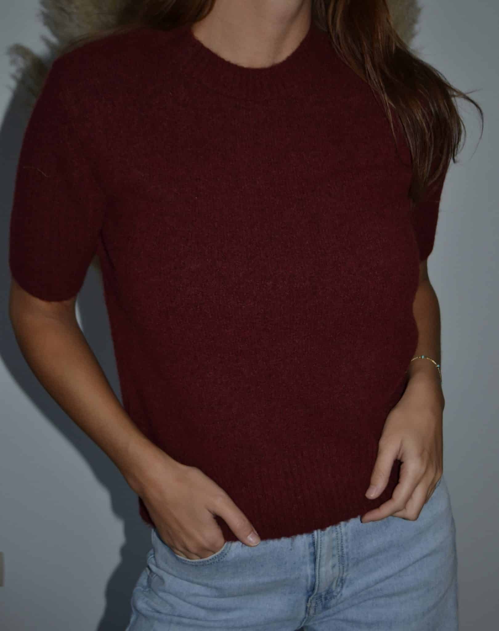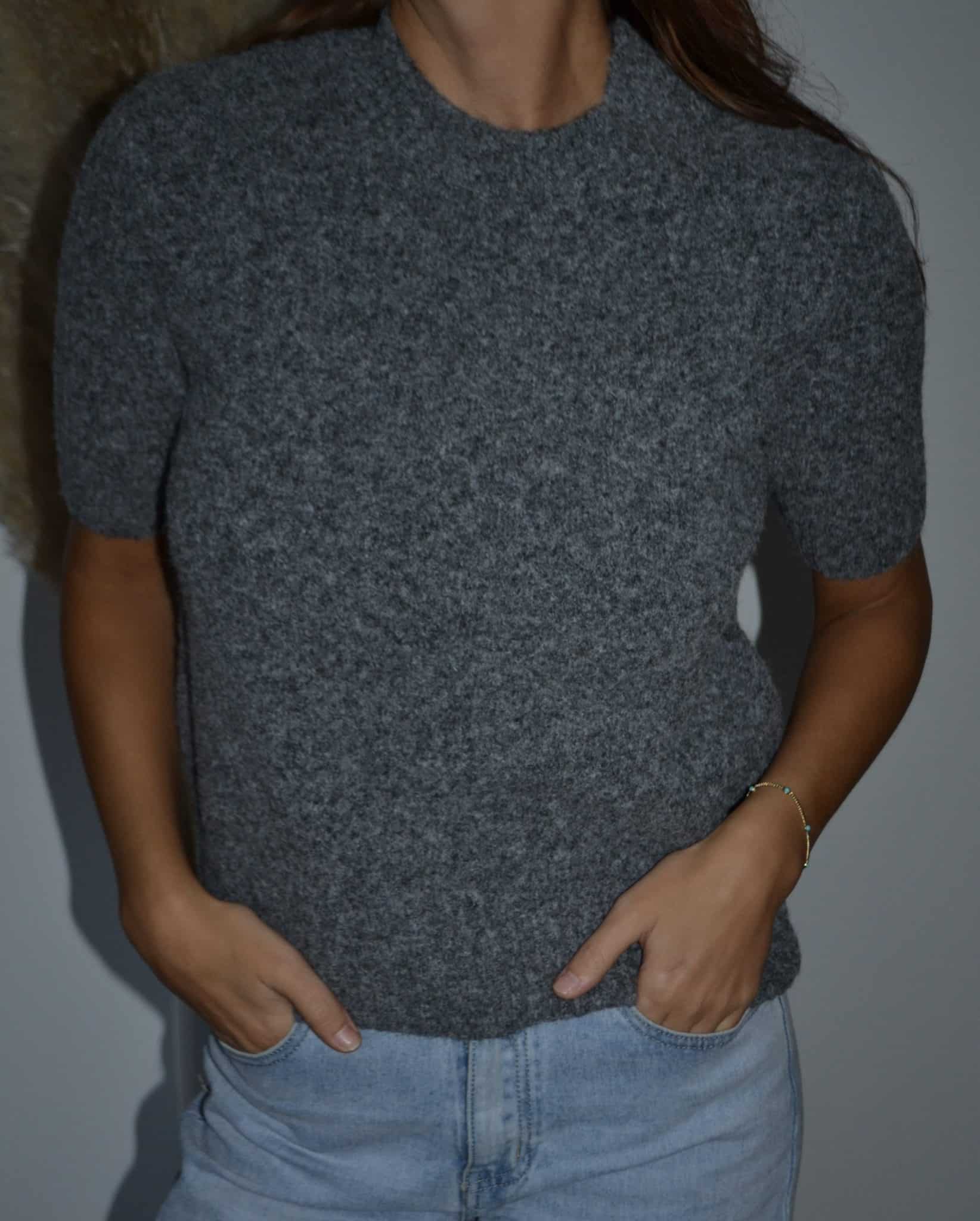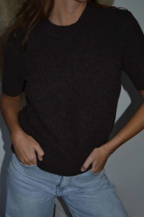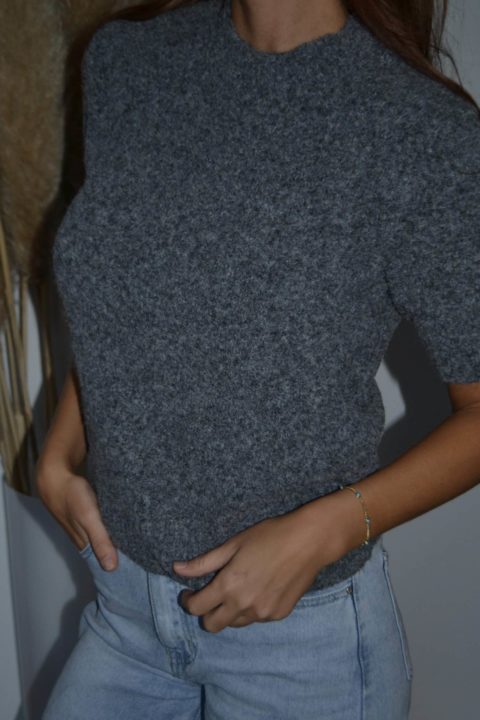 · Pull en maille douce et duveteuse, à manches courtes structurées