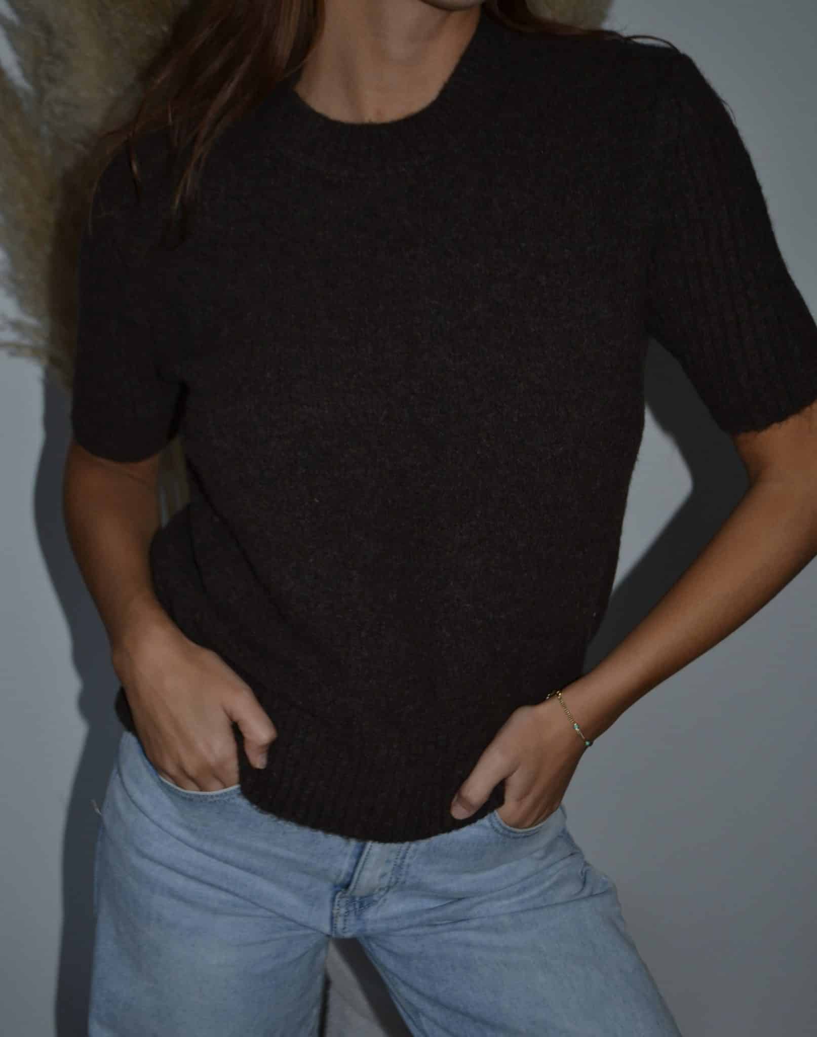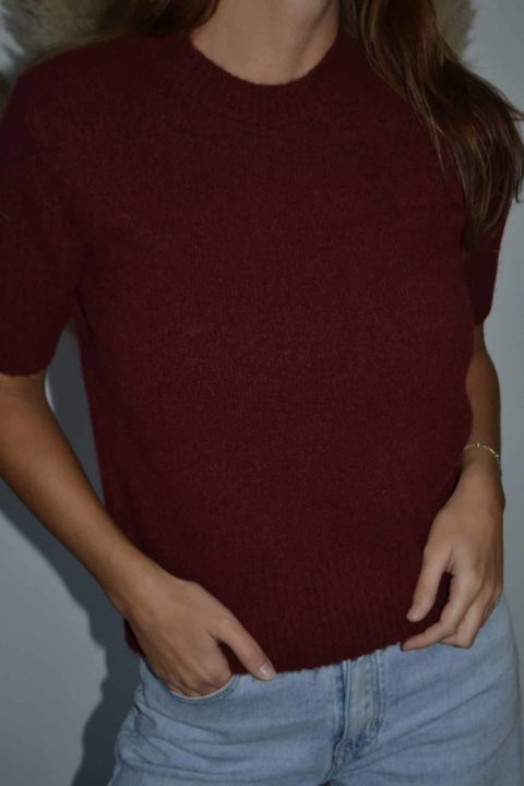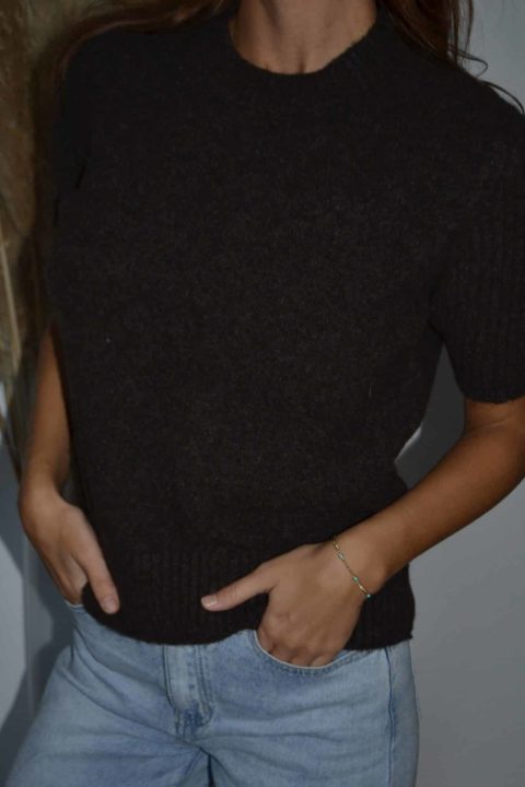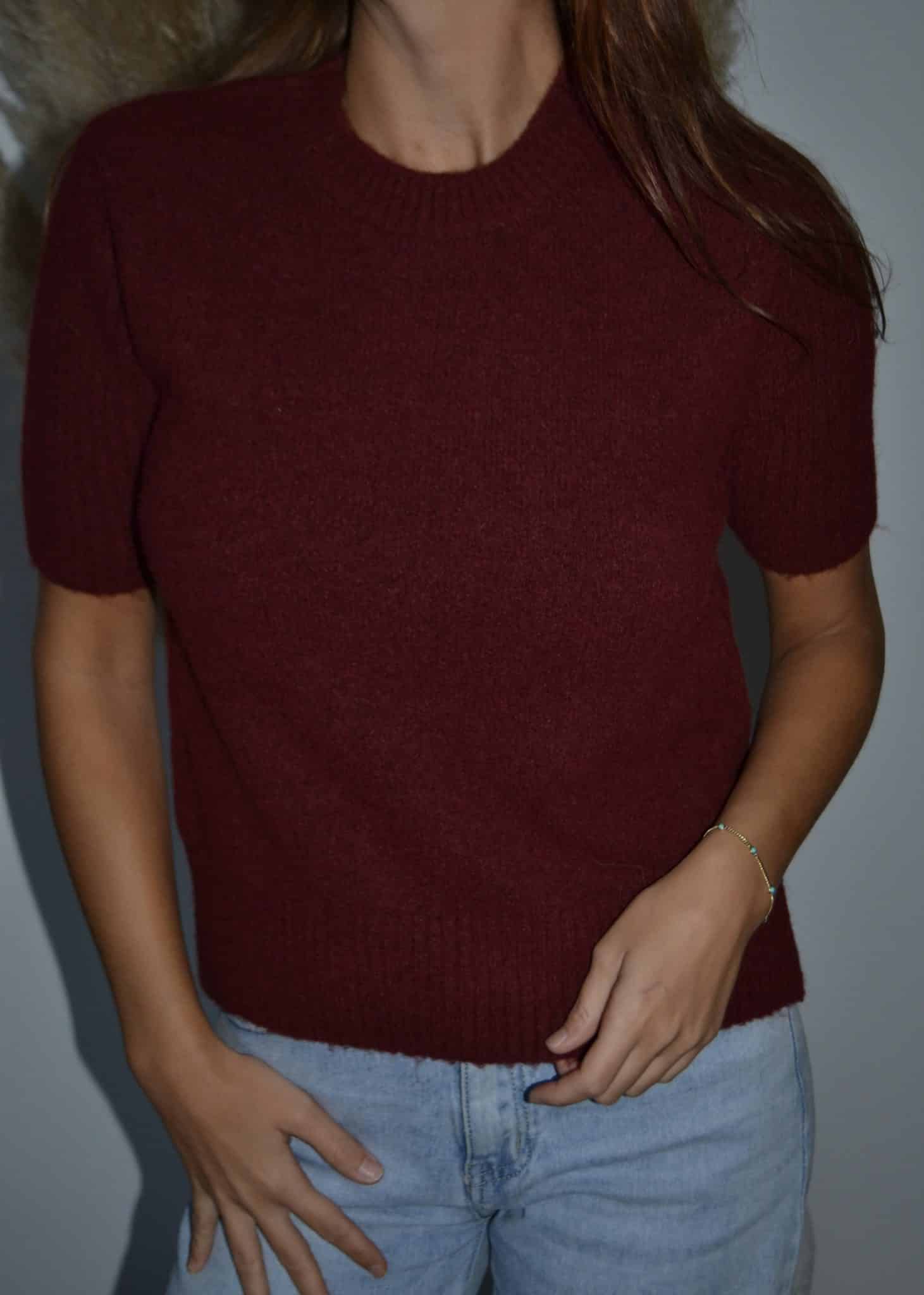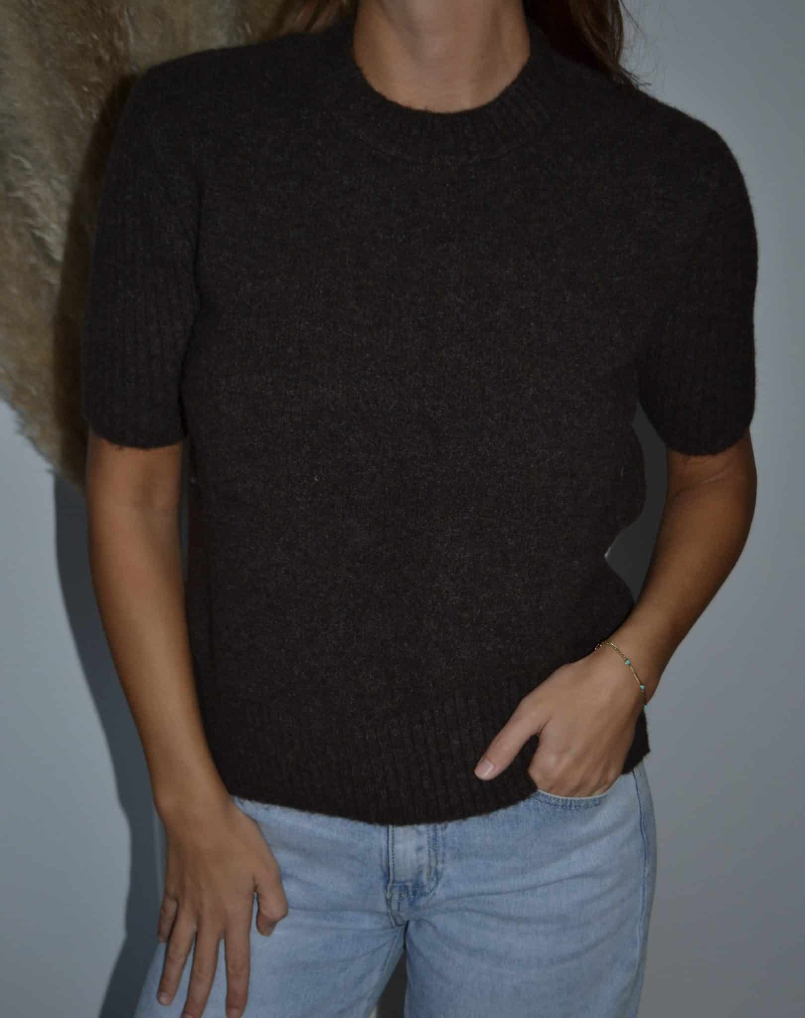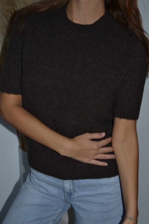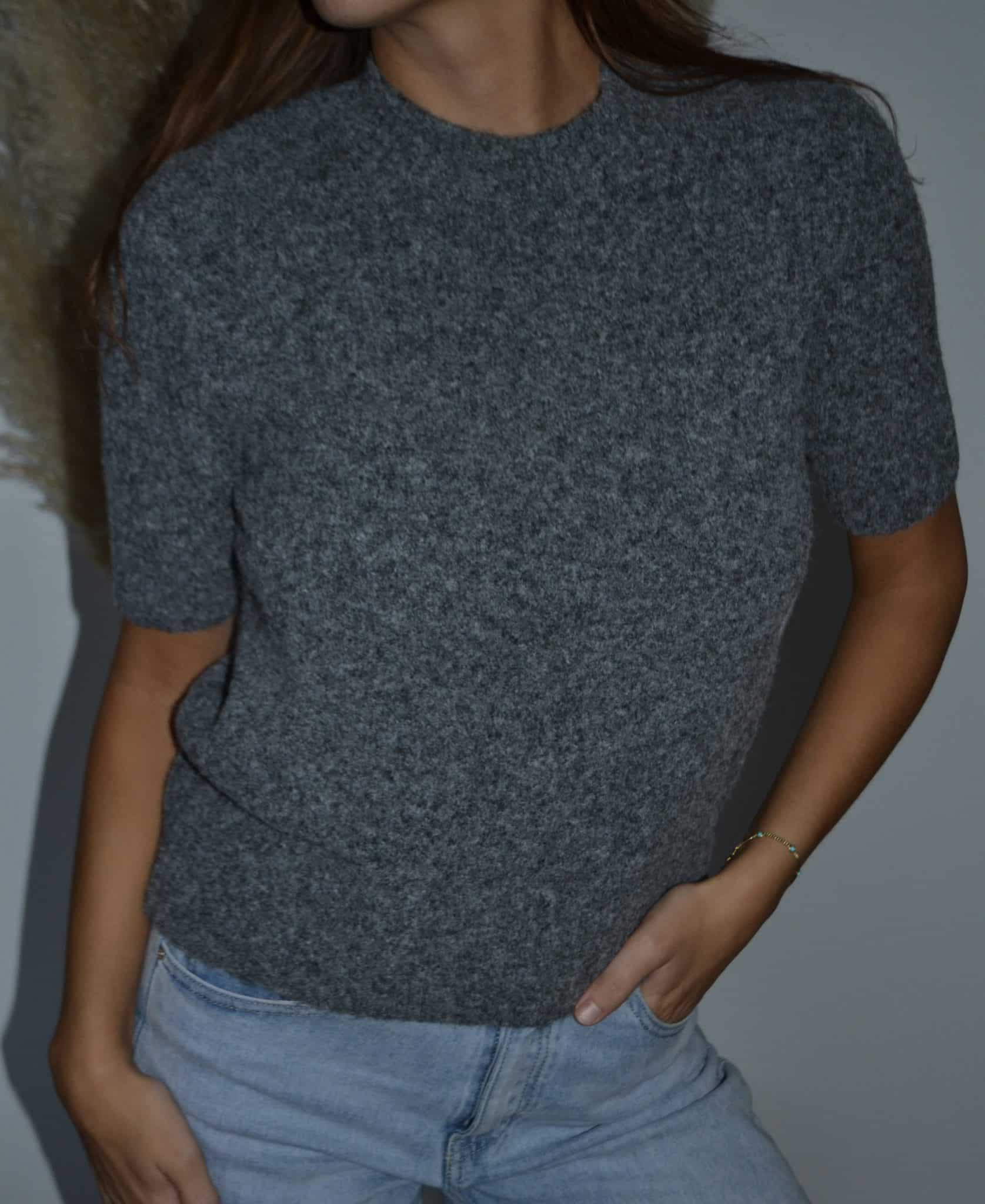 · Pull en maille douce et duveteuse, à manches courtes structurées