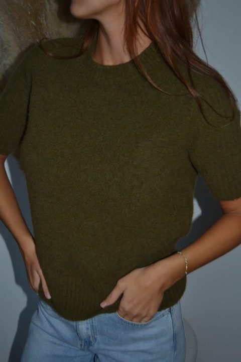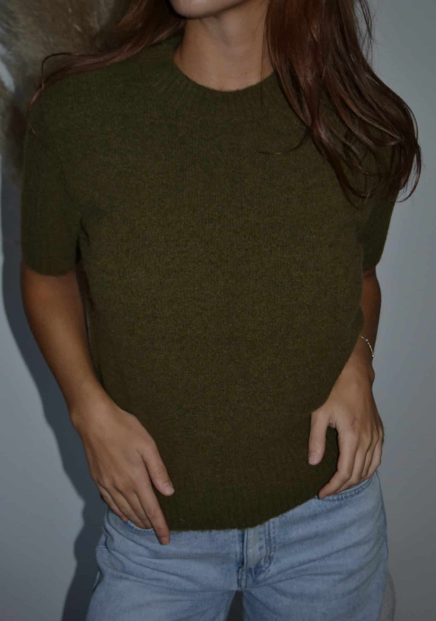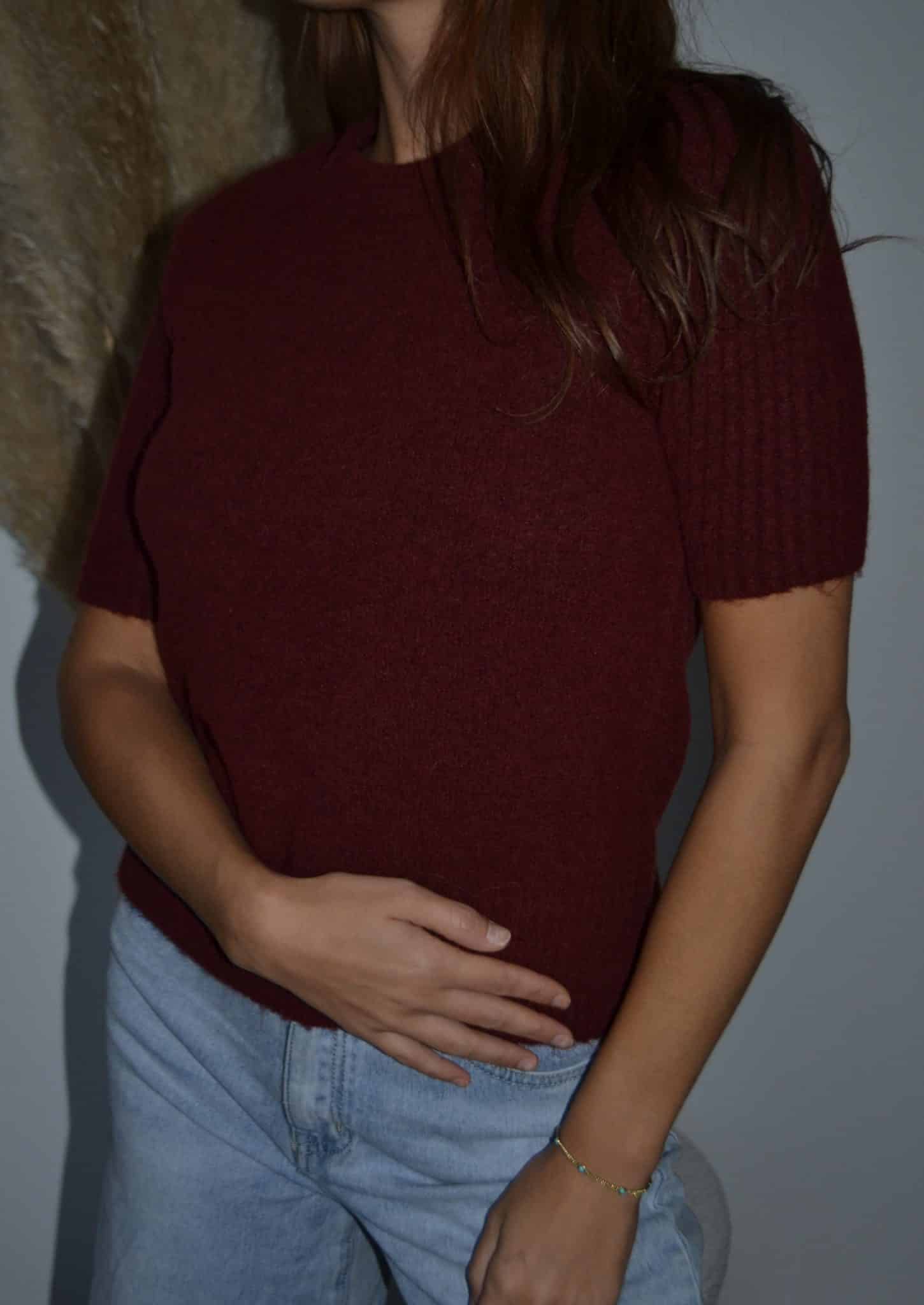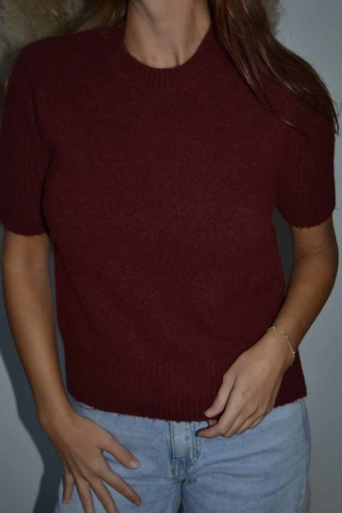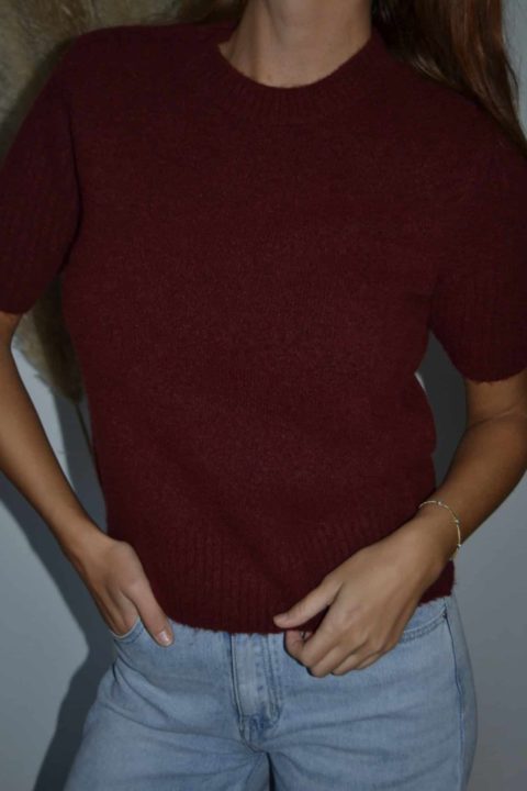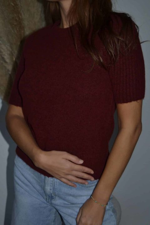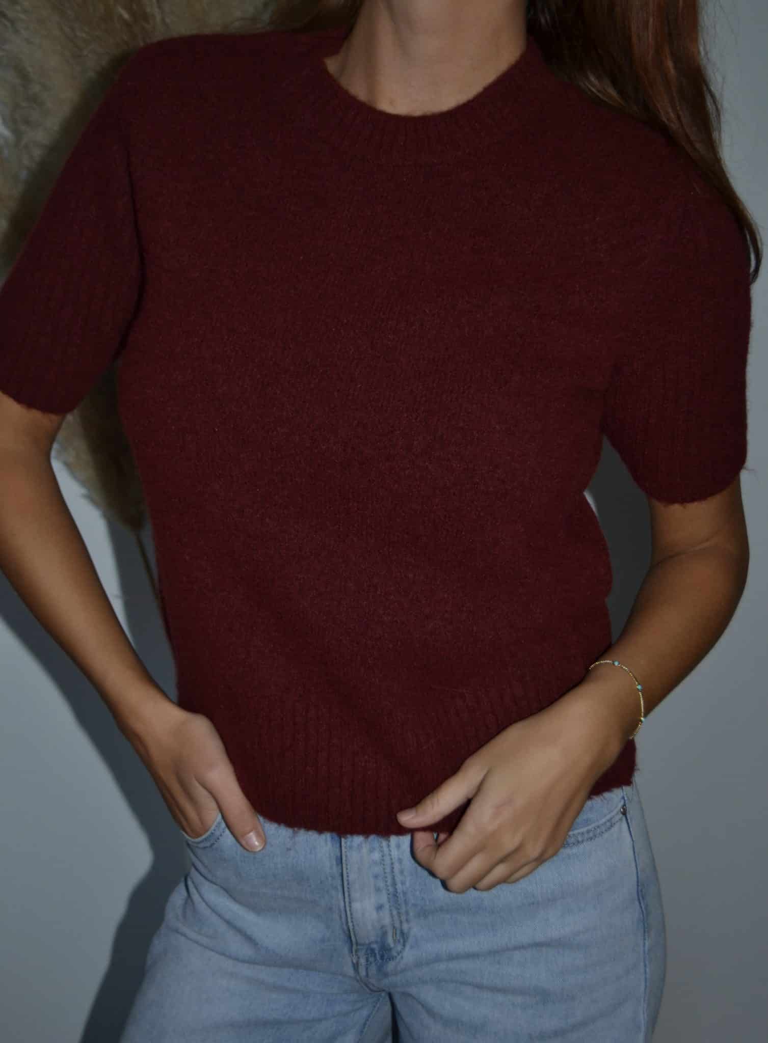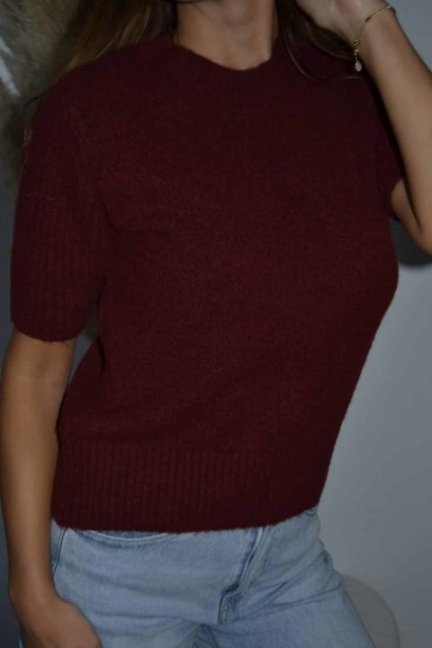 · Pull en maille douce et duveteuse, à manches courtes structurées