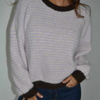 · Poignets et bas de pull en bord côte contrasté, offrant une belle finition et un look tendance