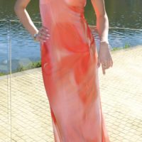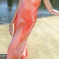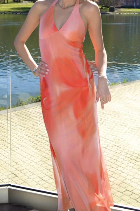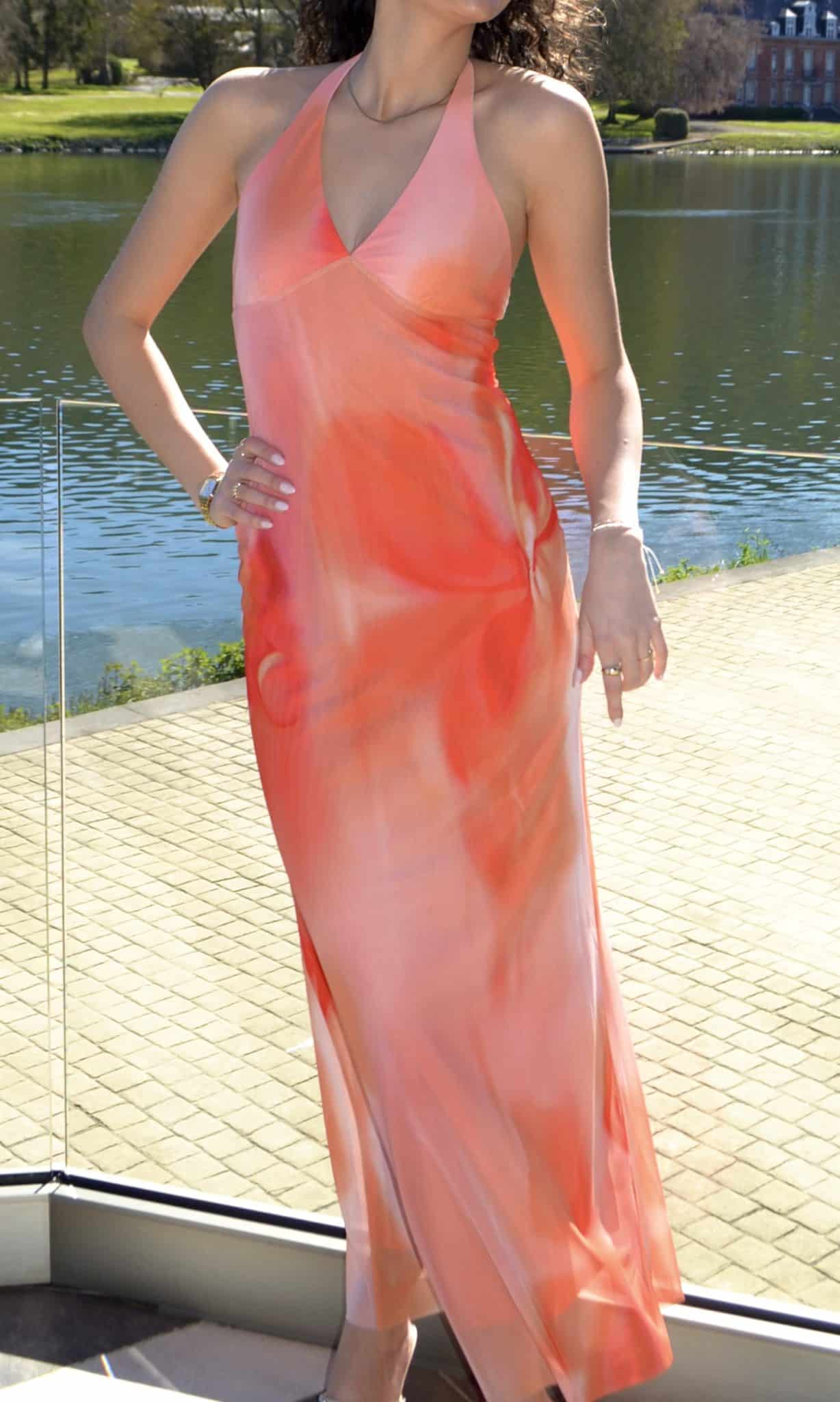 · Robe longue fluide à imprimé effet dégradé dans des tons corail, pêche et rosé