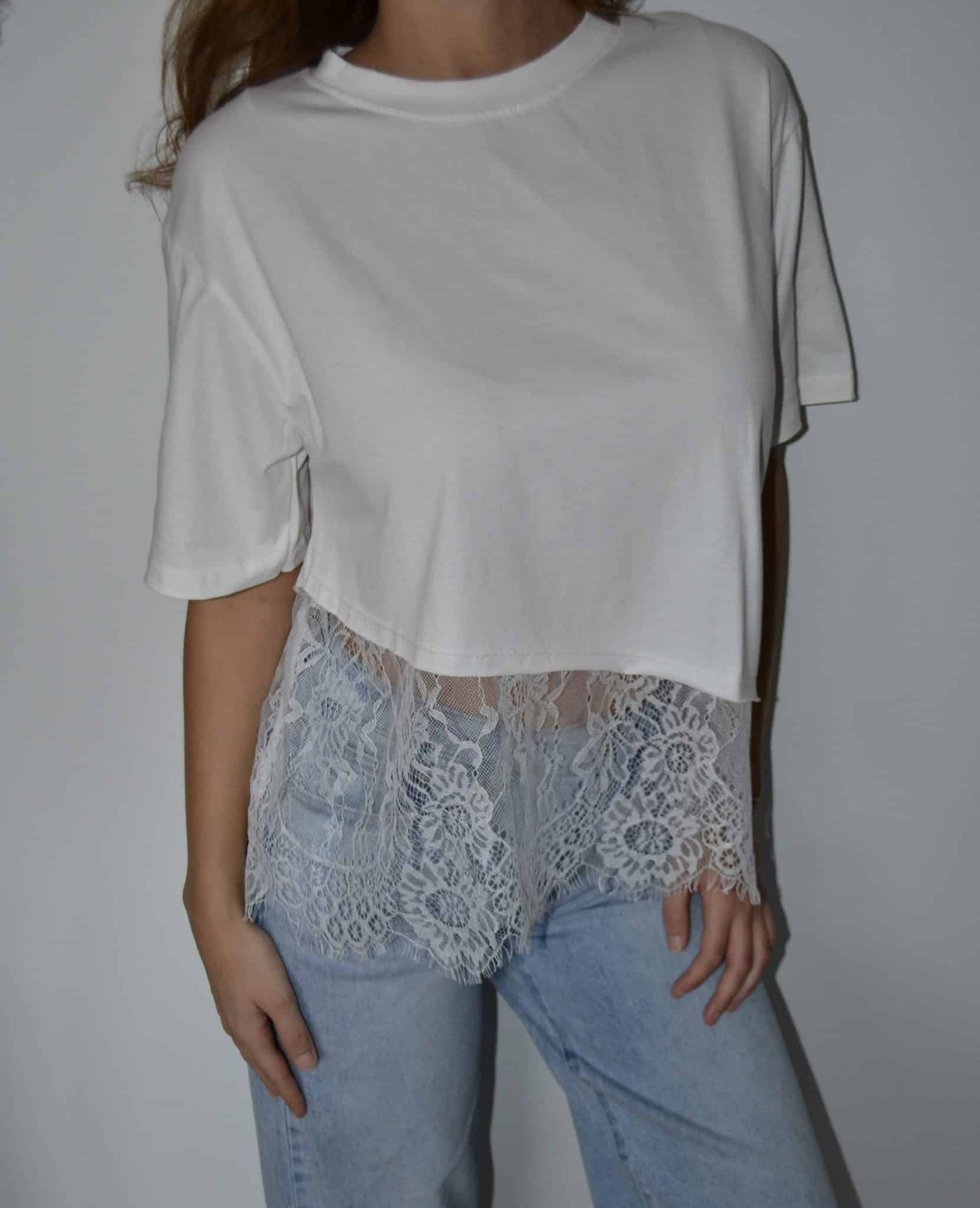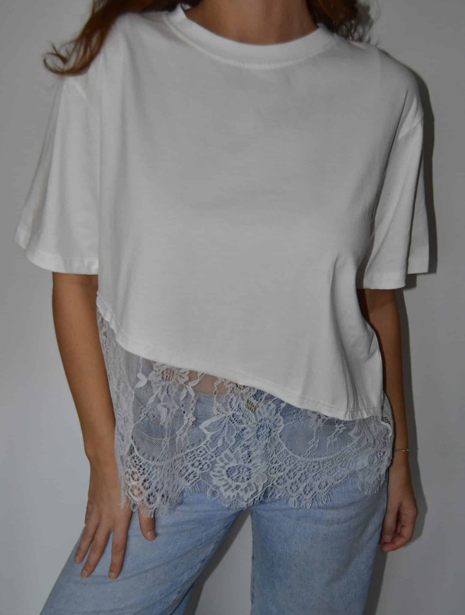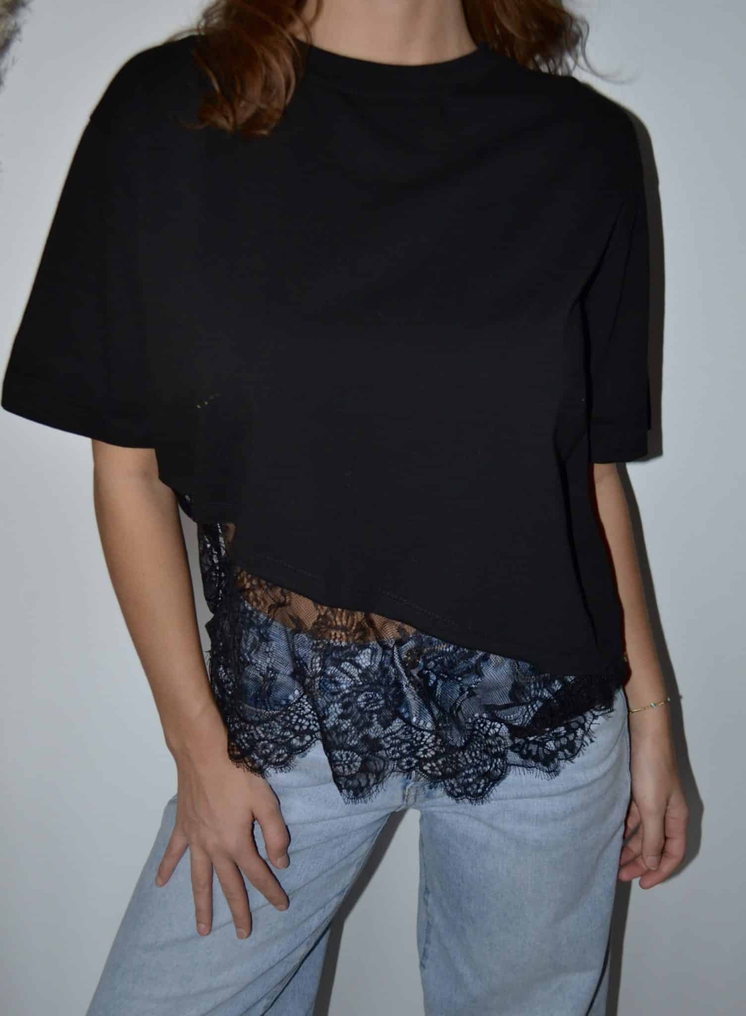 · T-shirt asymétrique avec empiècement dentelle, ultra tendance et féminin