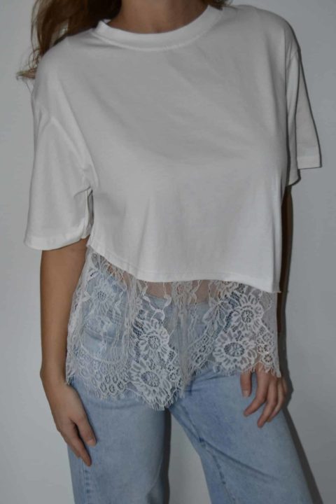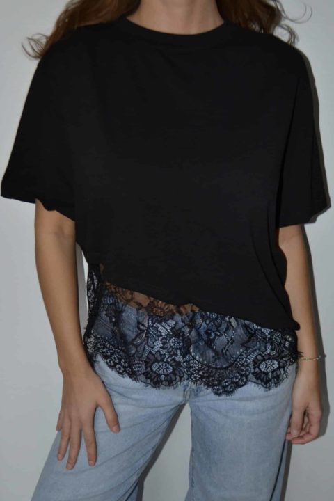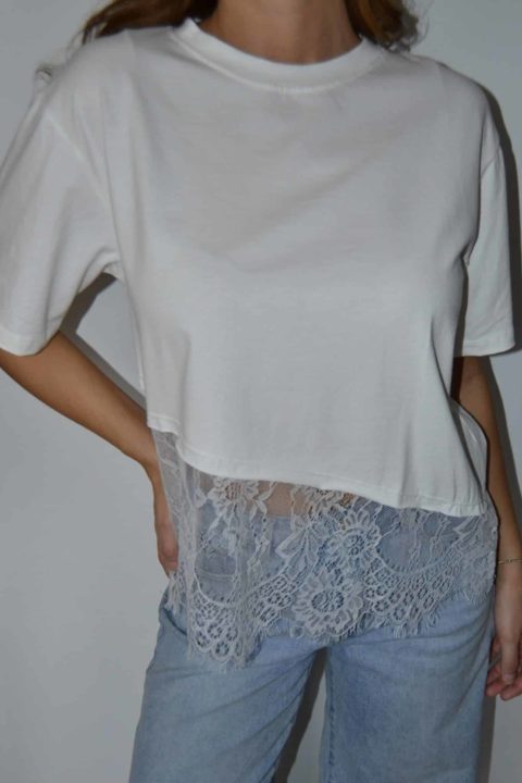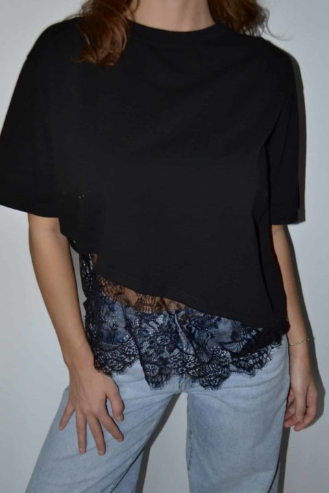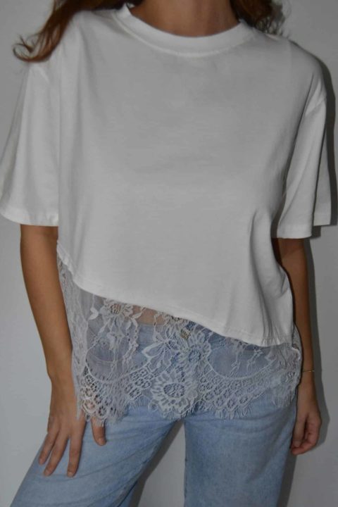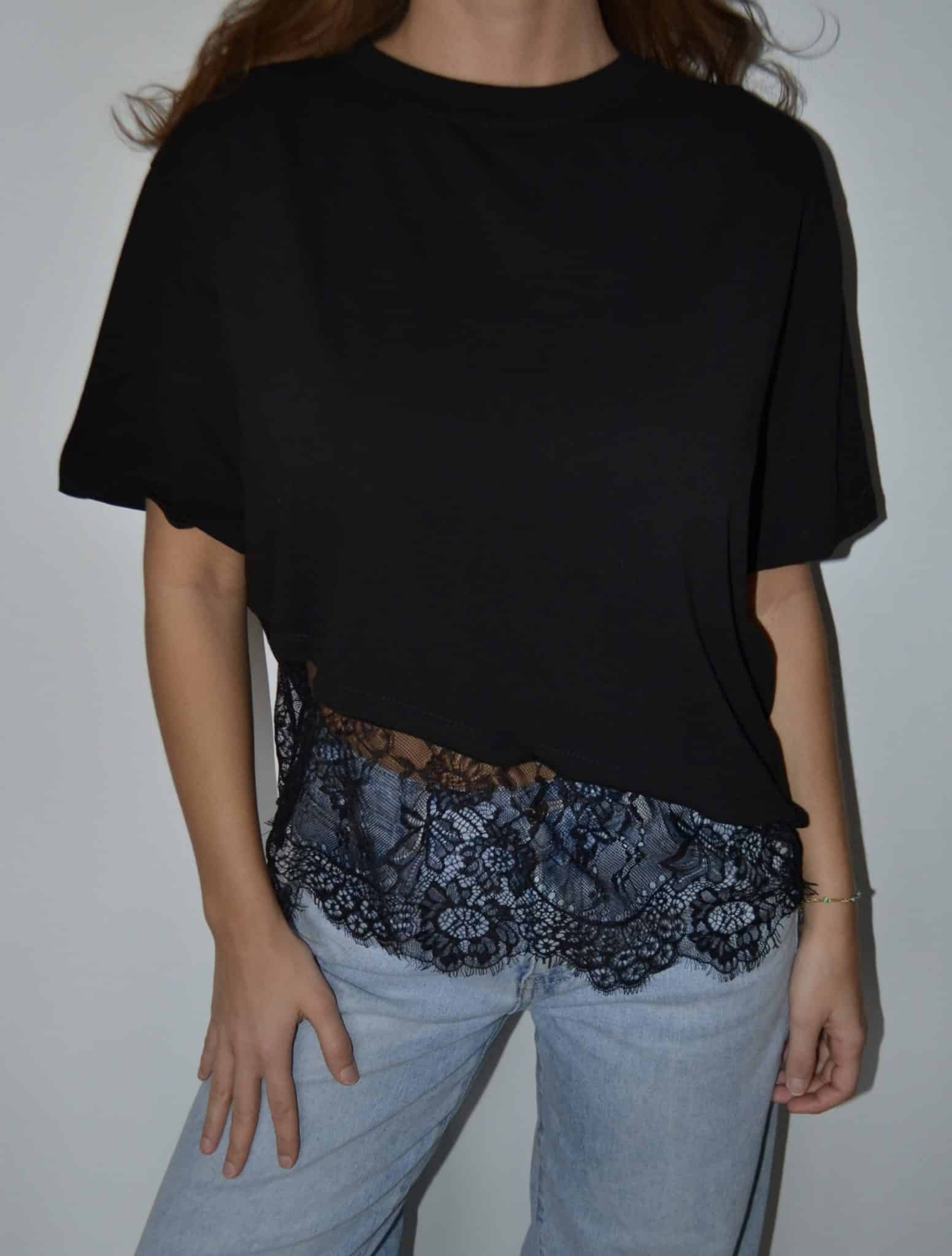 · T-shirt asymétrique avec empiècement dentelle, ultra tendance et féminin