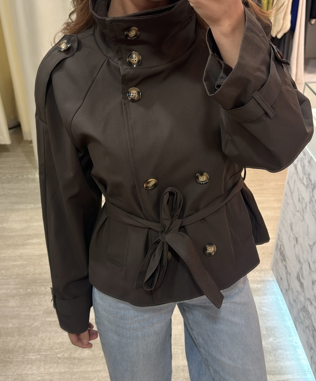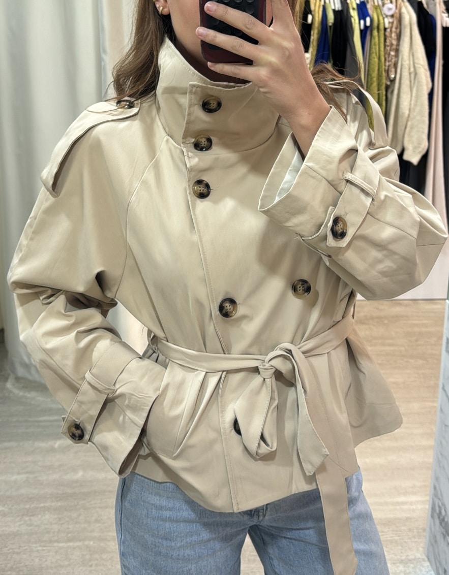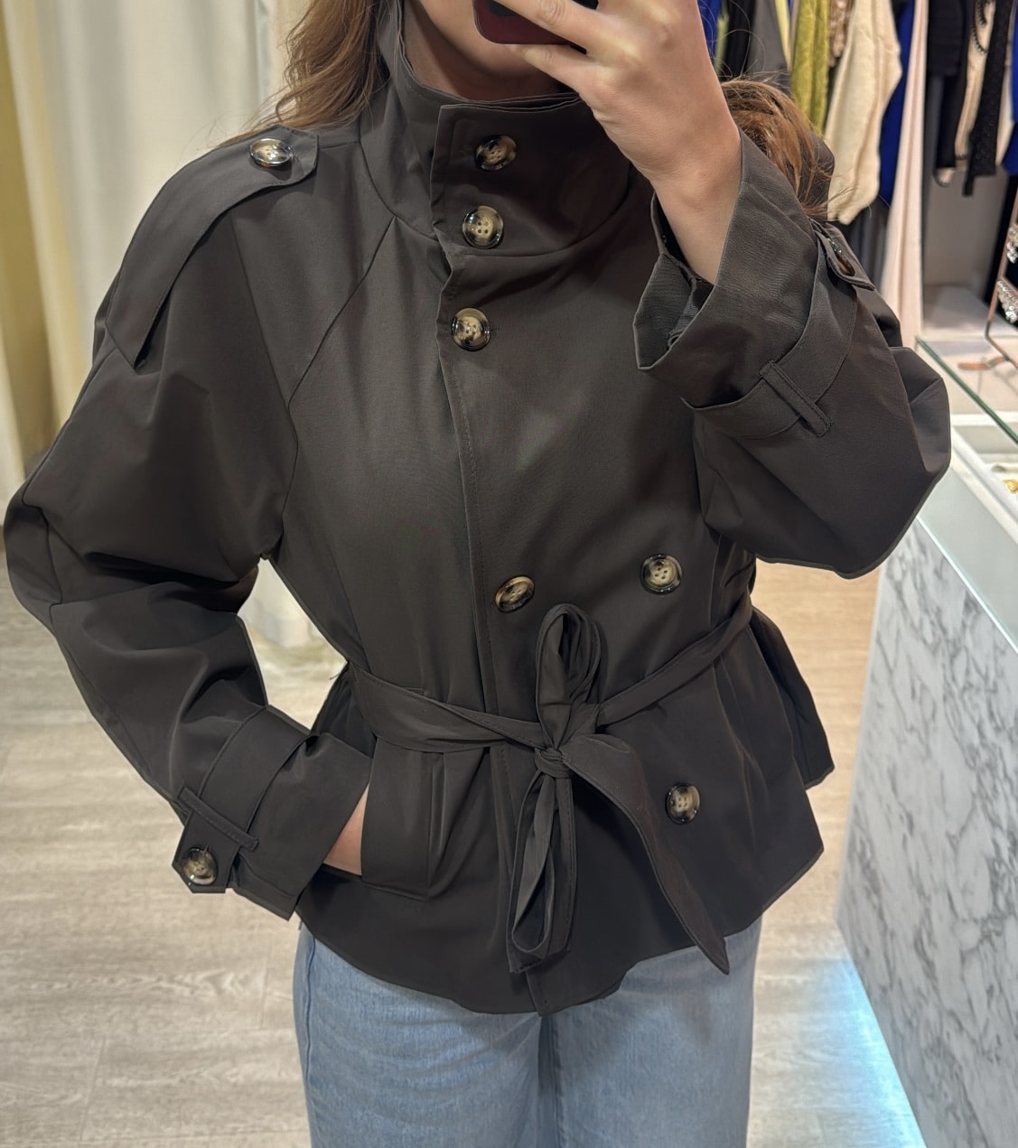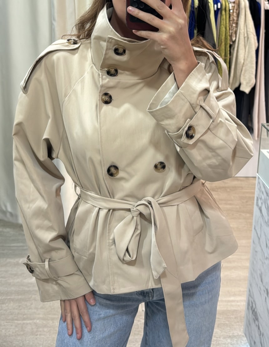 · Épaules structurées avec pattes boutonnées pour un style trench iconique revisité