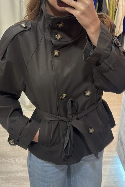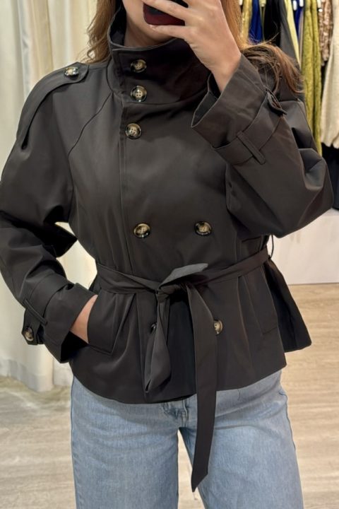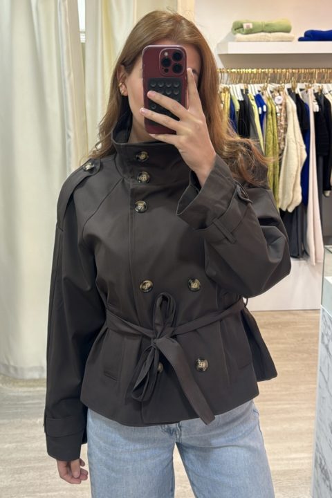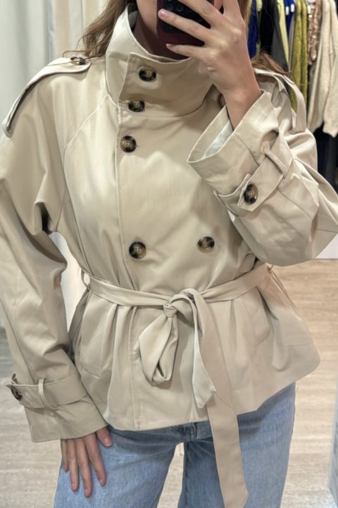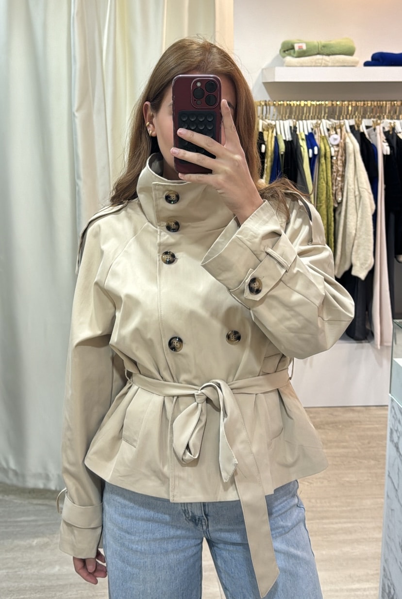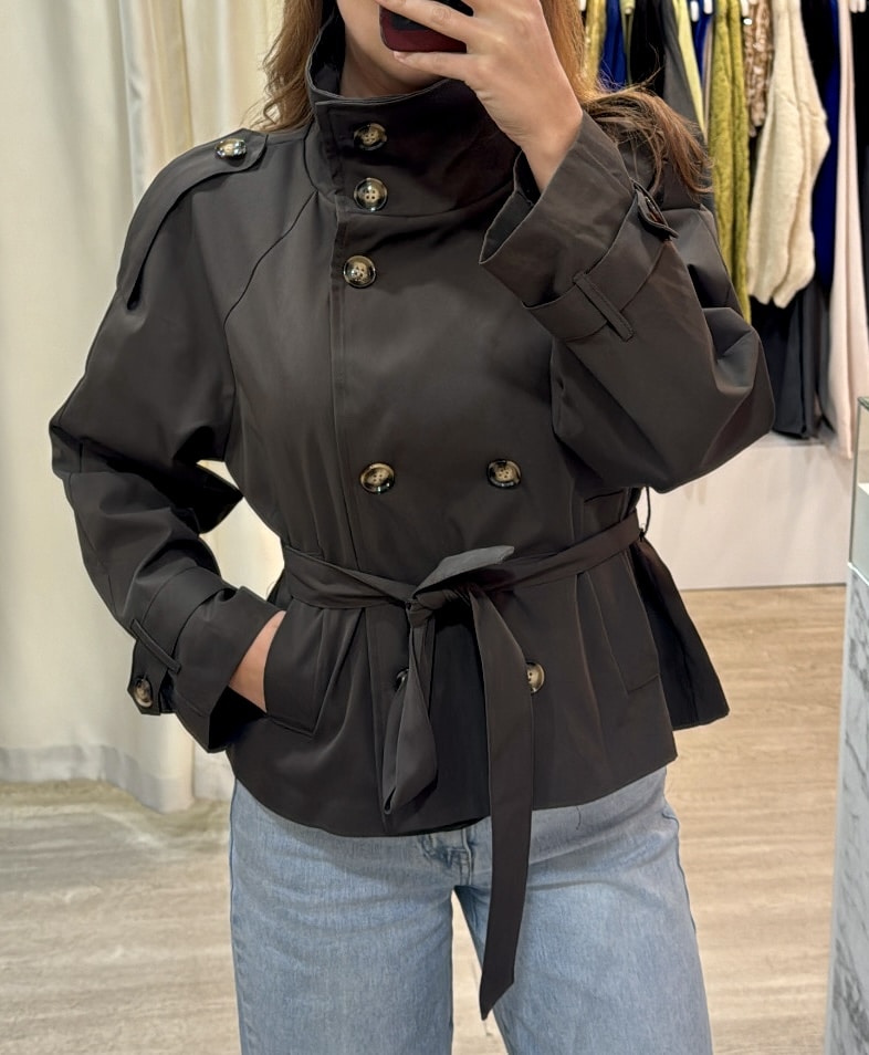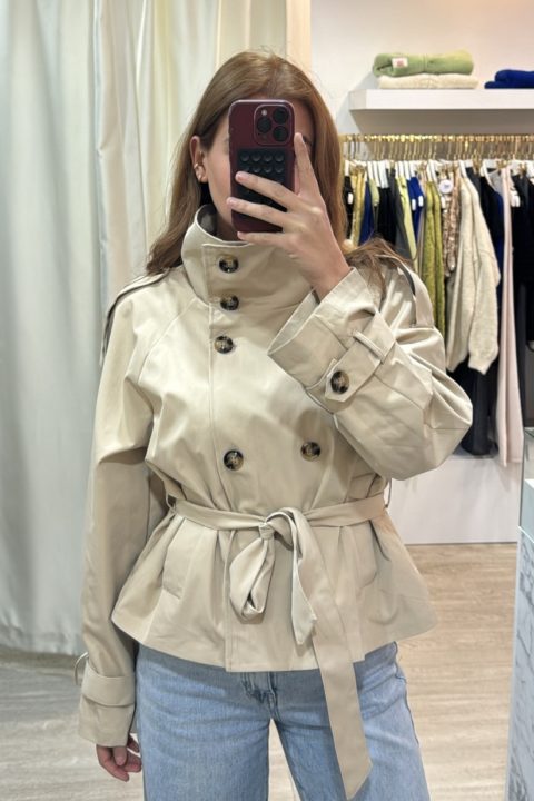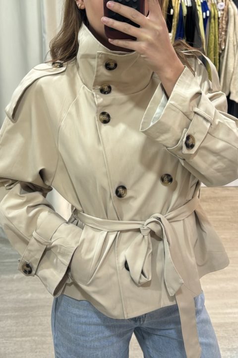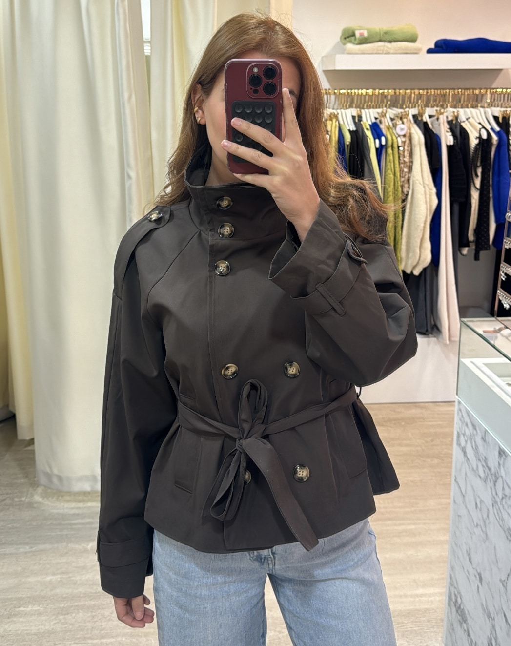 · Épaules structurées avec pattes boutonnées pour un style trench iconique revisité