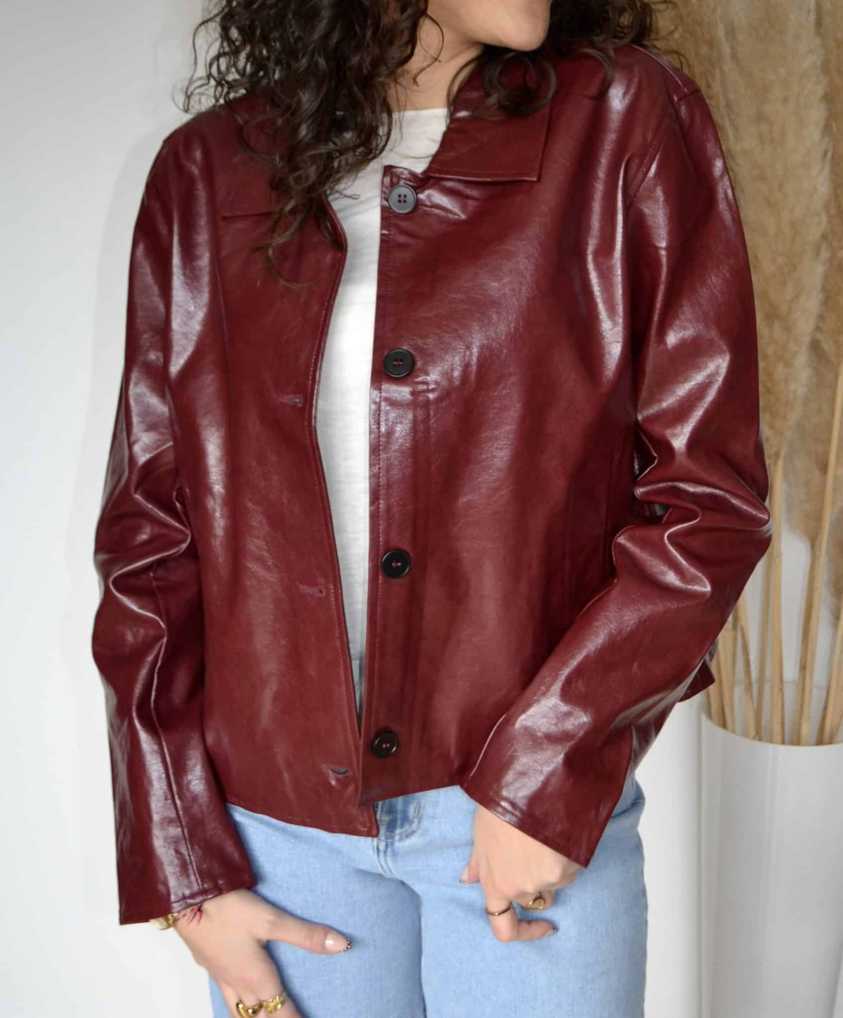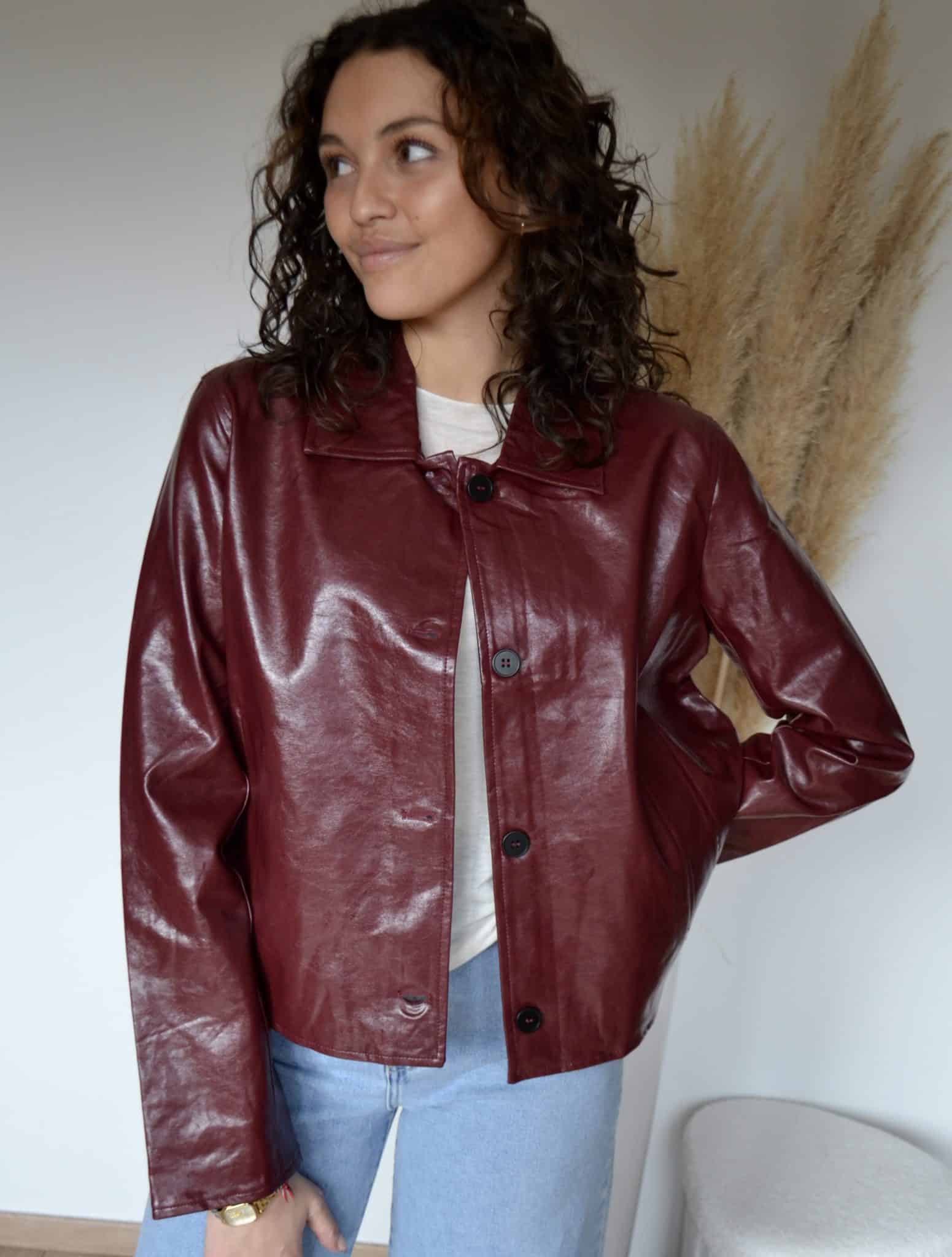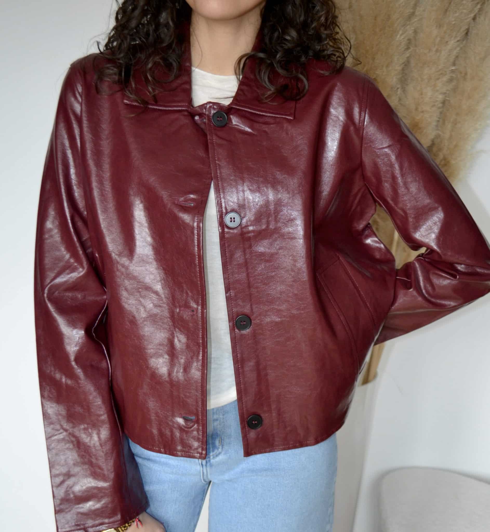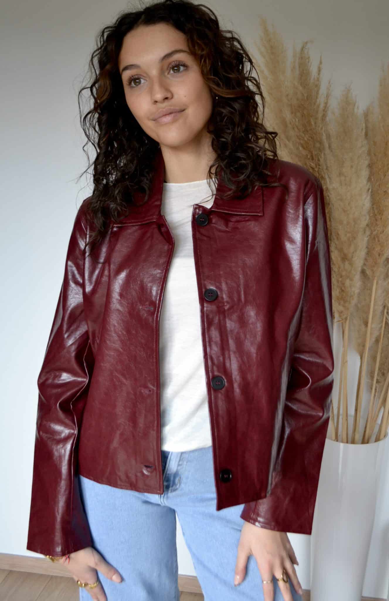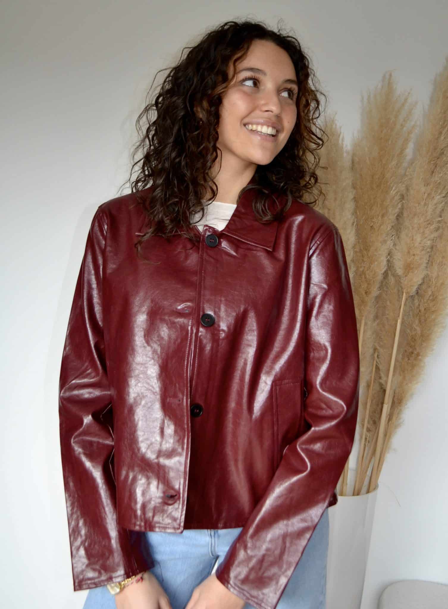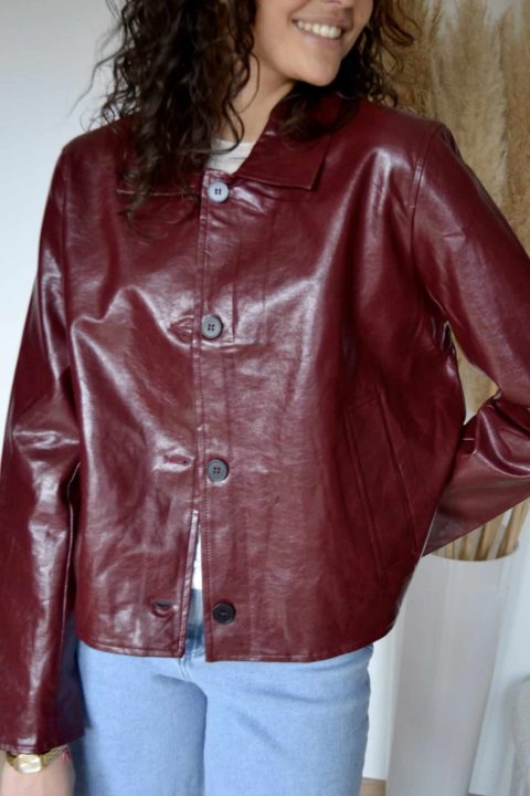 · Veste en simili cuir bordeaux, élégante et intemporelle