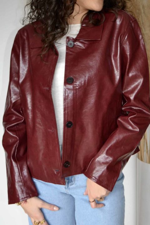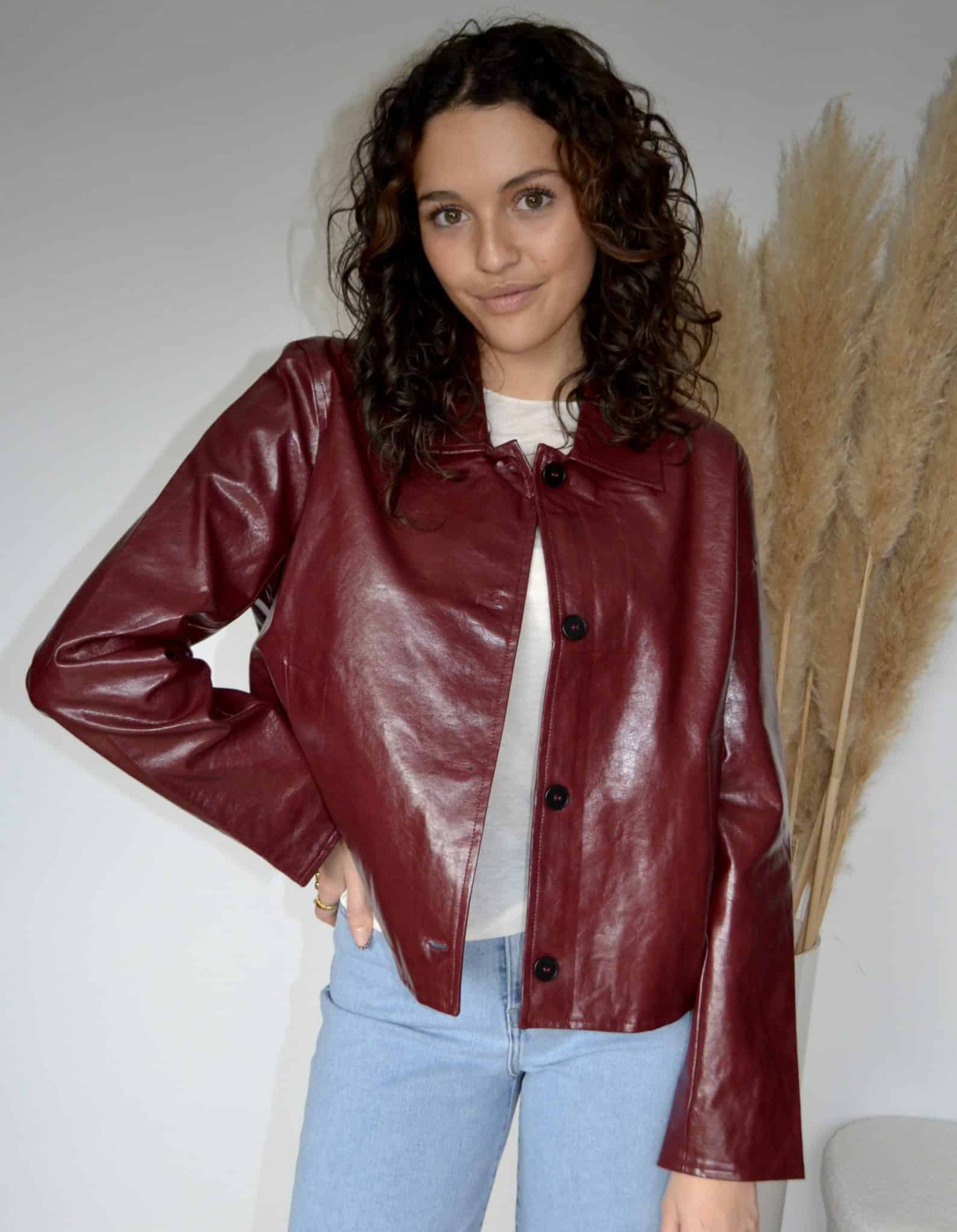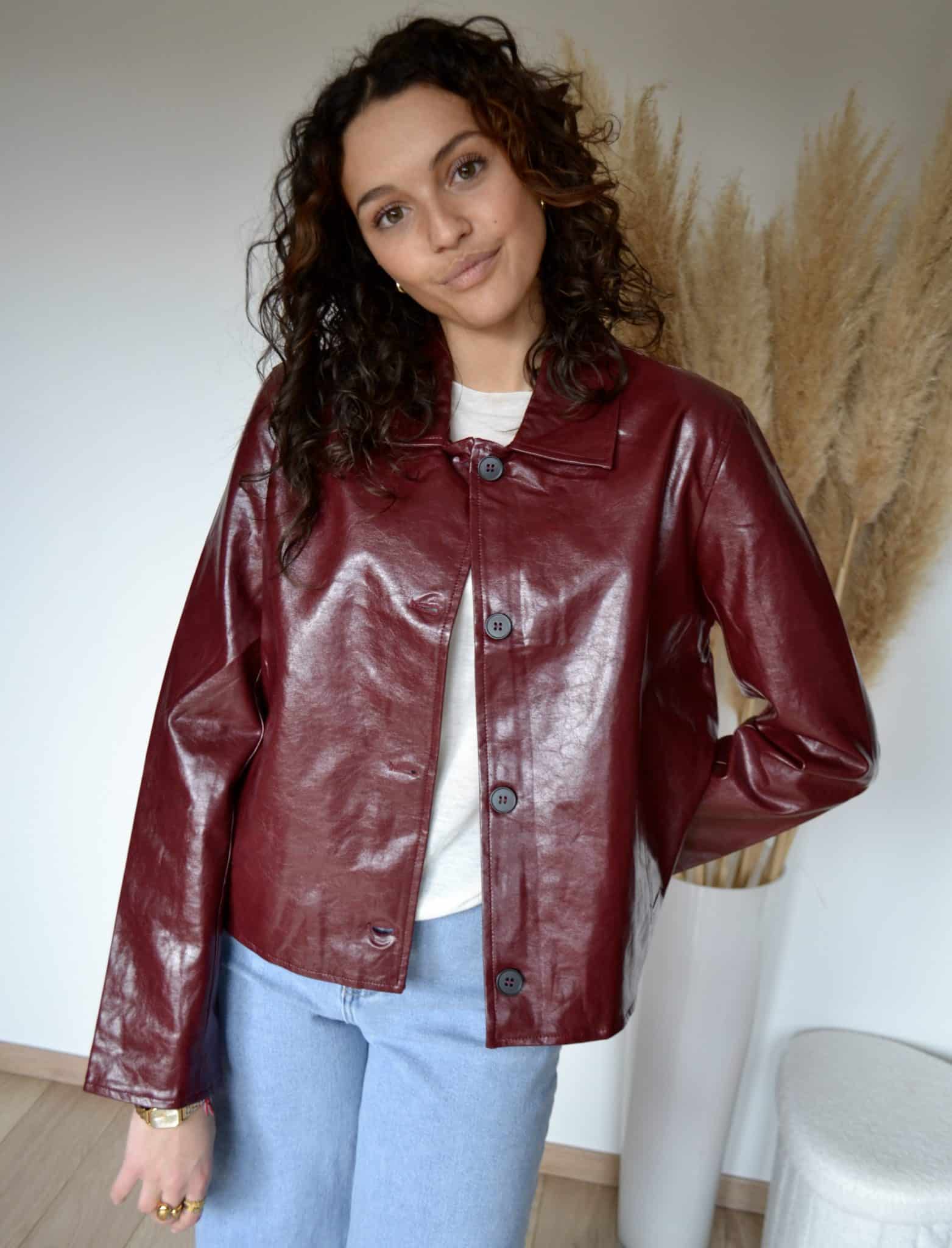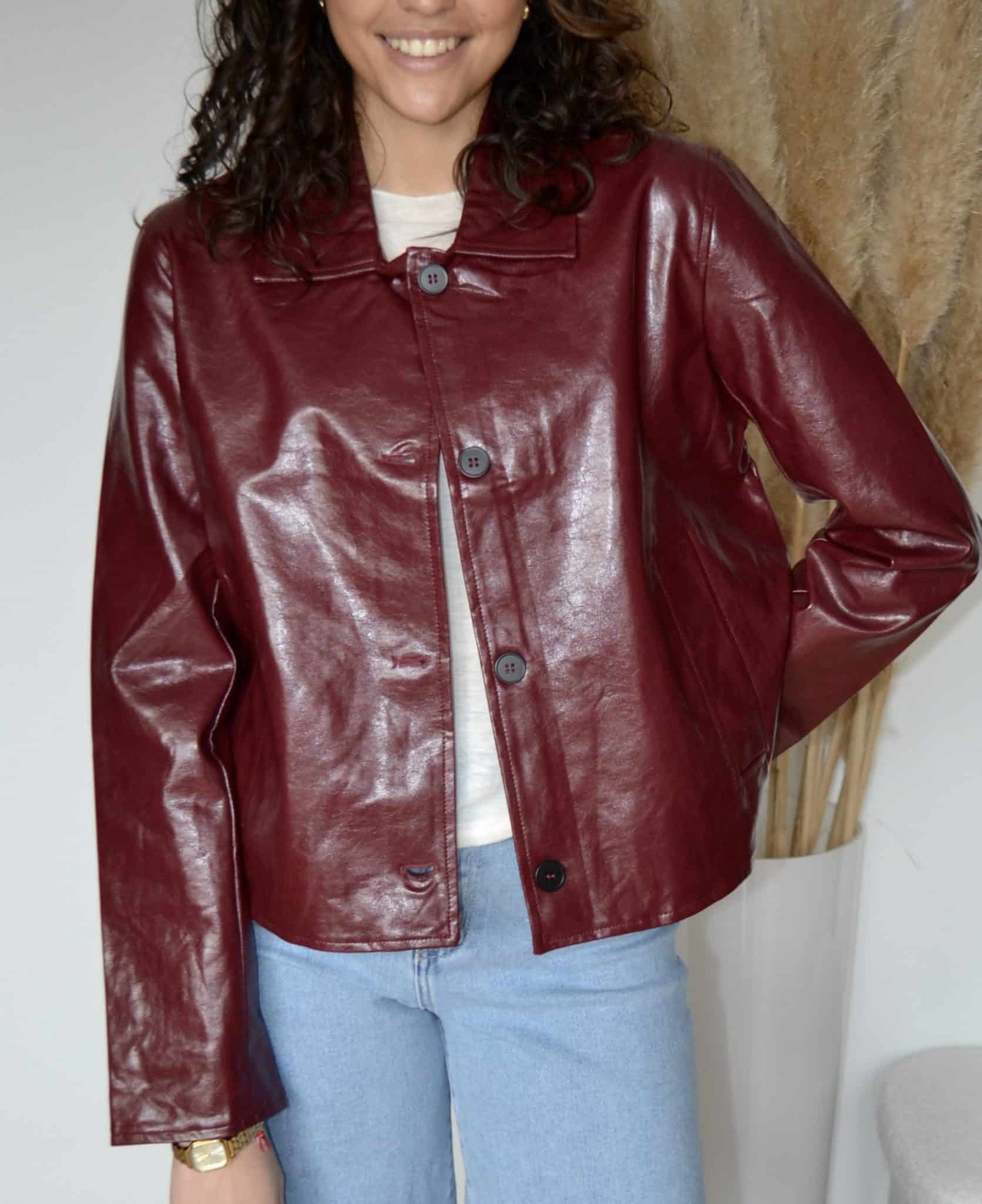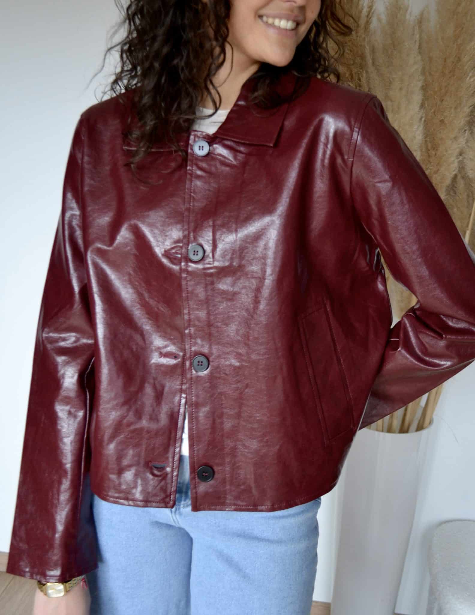 · Veste en simili cuir bordeaux, élégante et intemporelle