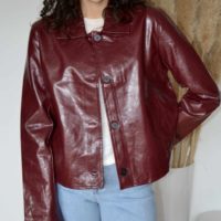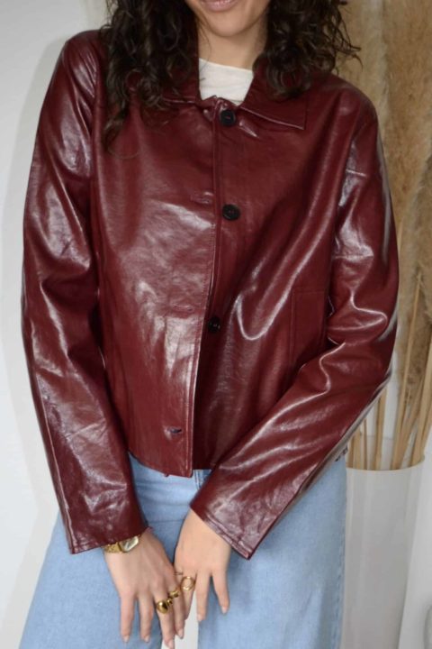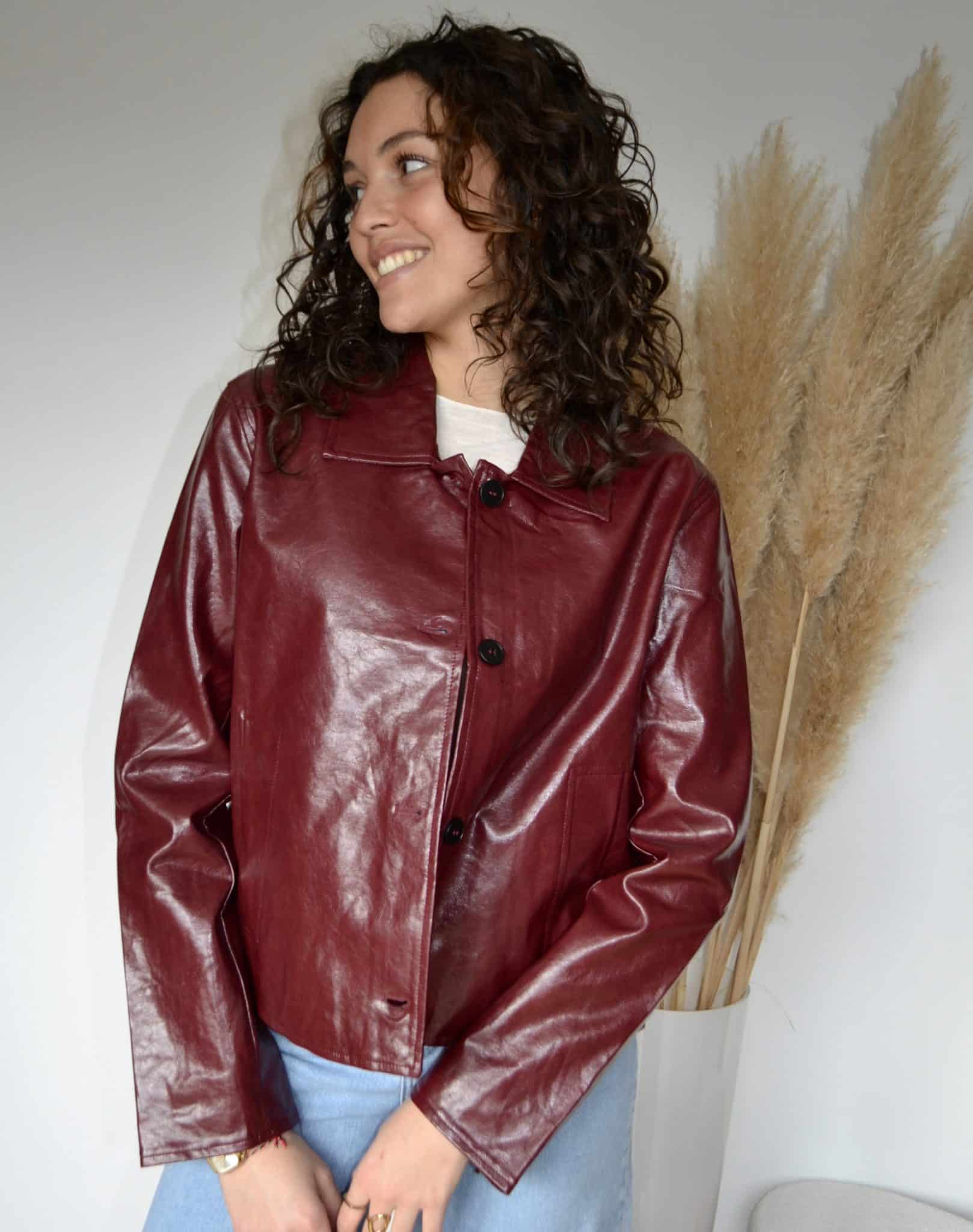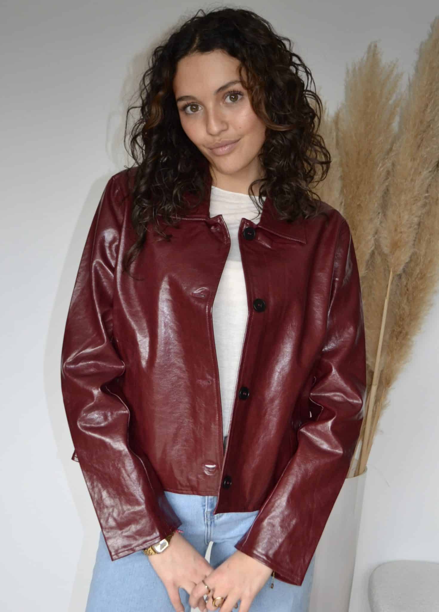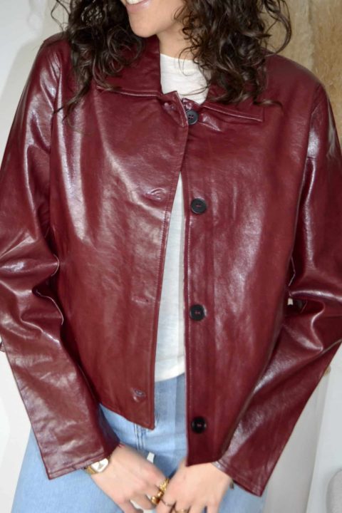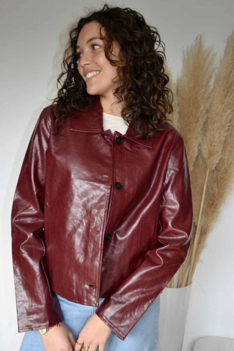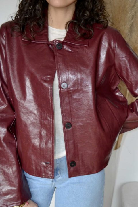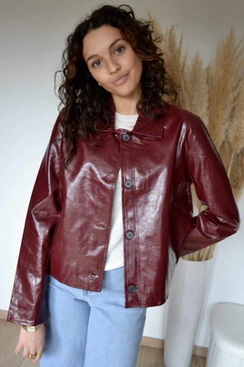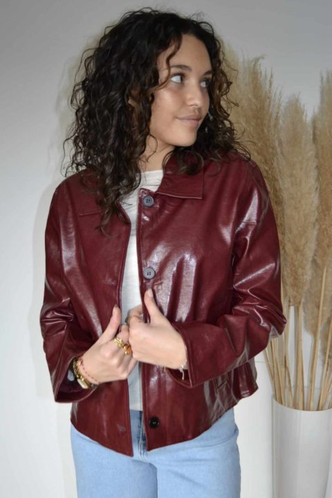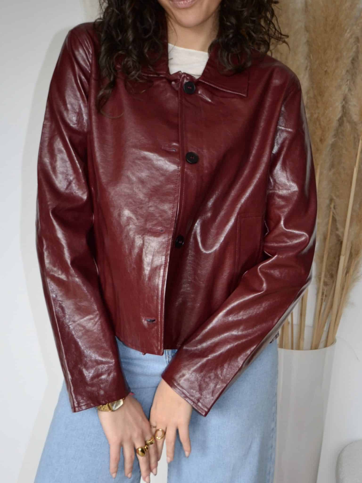 · Veste en simili cuir bordeaux, élégante et intemporelle