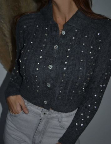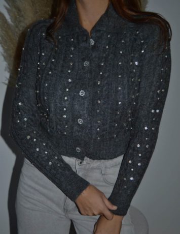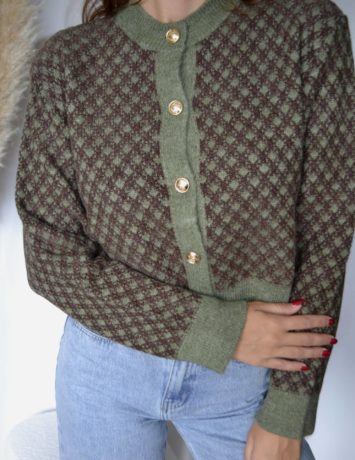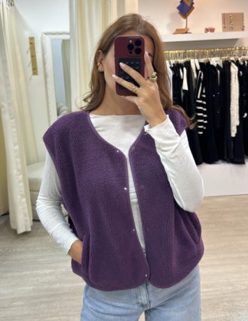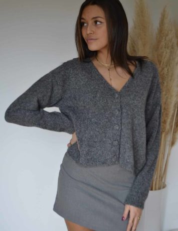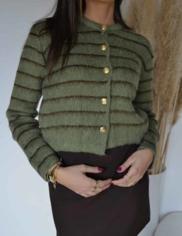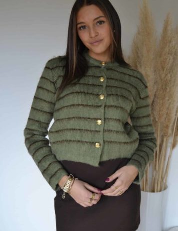 Gilet doux à rayures multicolores - Gris et rose poudré