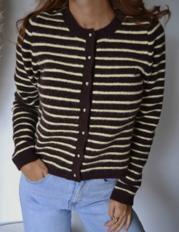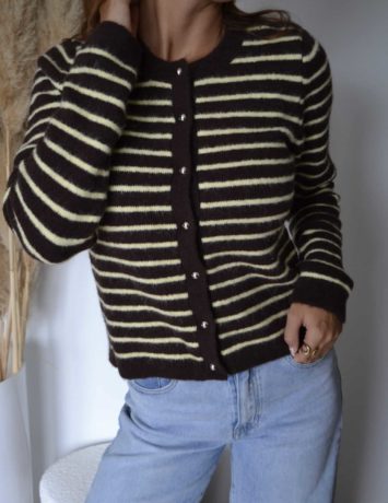Gilet doux à rayures multicolores - Rose et jaune pastel