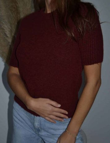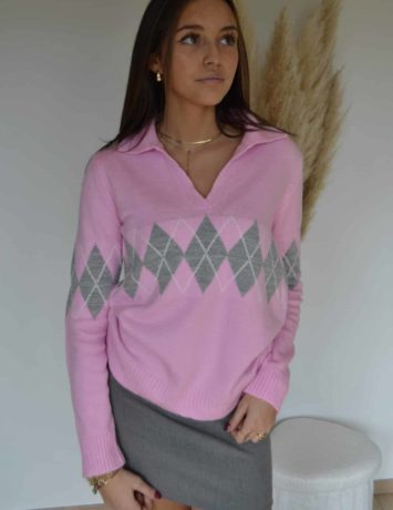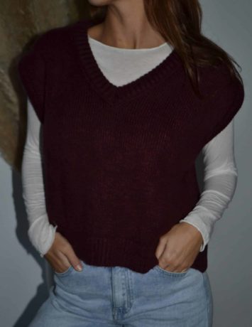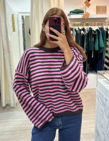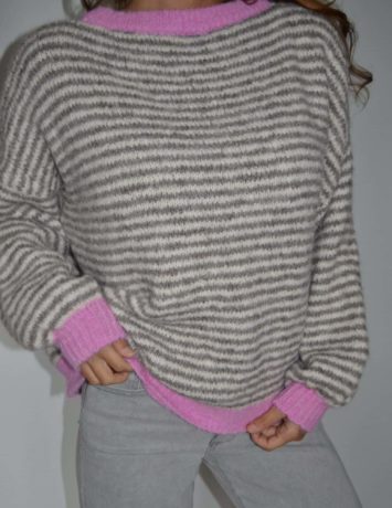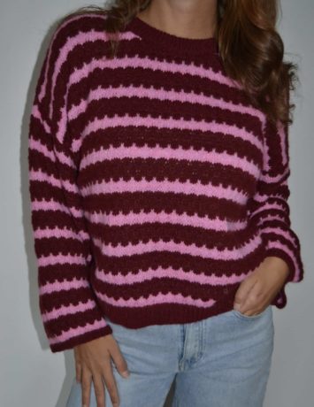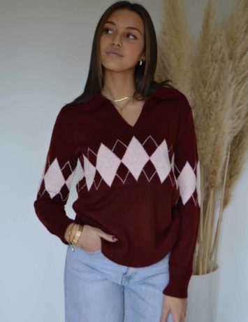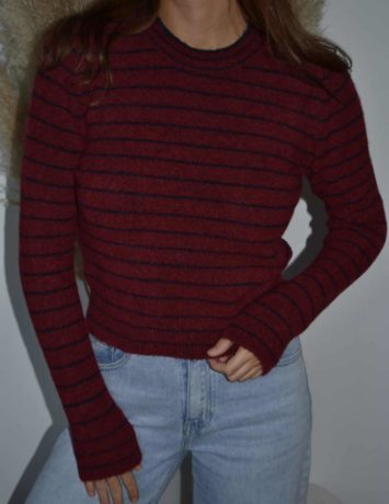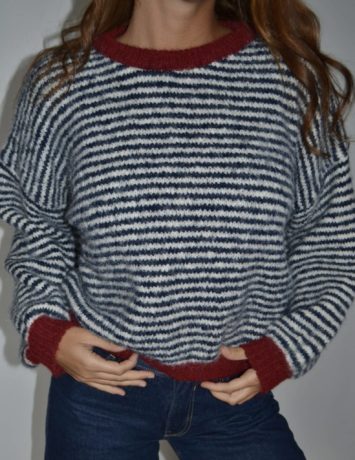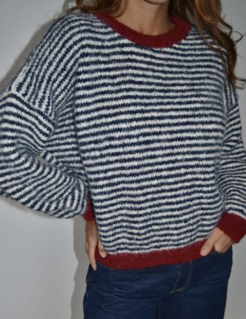 Pulll en maille bleu marine & blanc avec finitions bordeaux