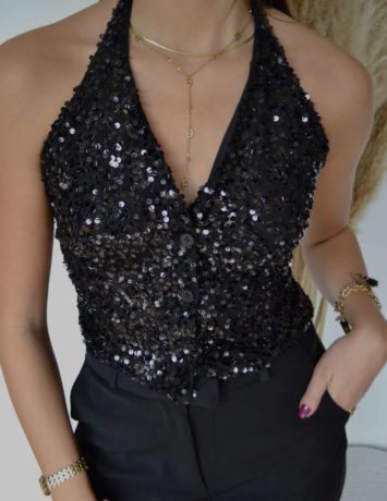 Haut à sequins noirs ouvert dans le dos